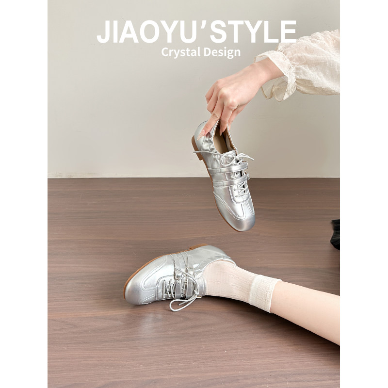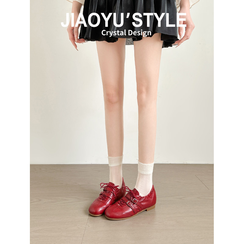 真皮 红色方头系带休闲运动玛丽珍鞋 骄屿内增高芭蕾德训鞋 春新款