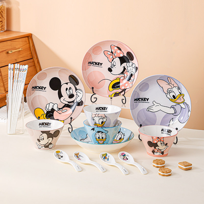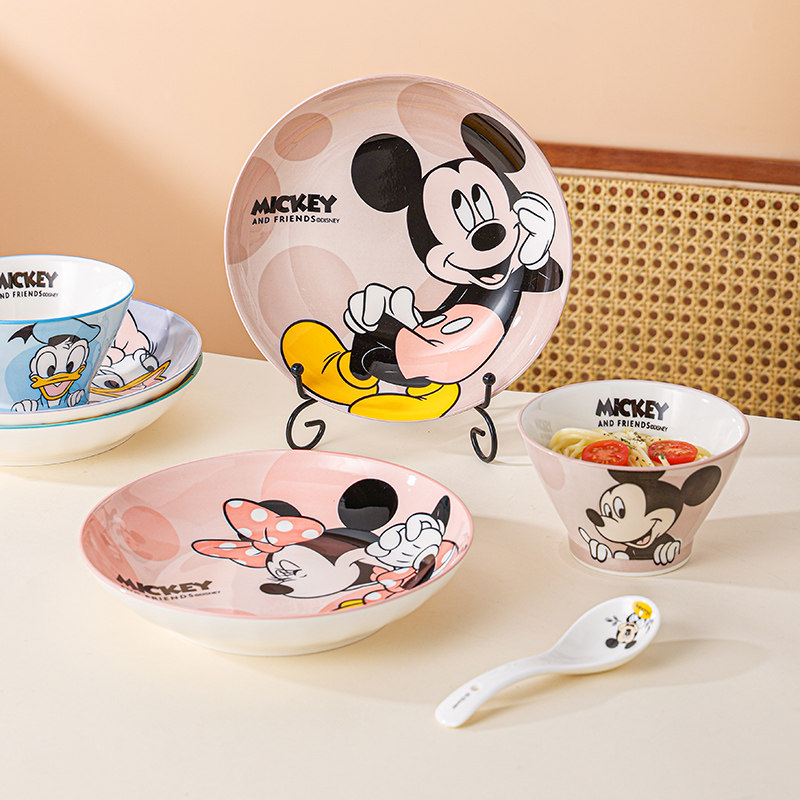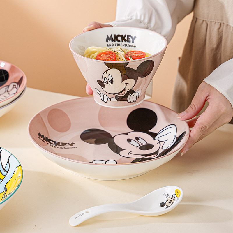 迪士尼盘子陶瓷可爱儿童餐盘釉下彩创意餐具菜盘深盘家用沙拉盘