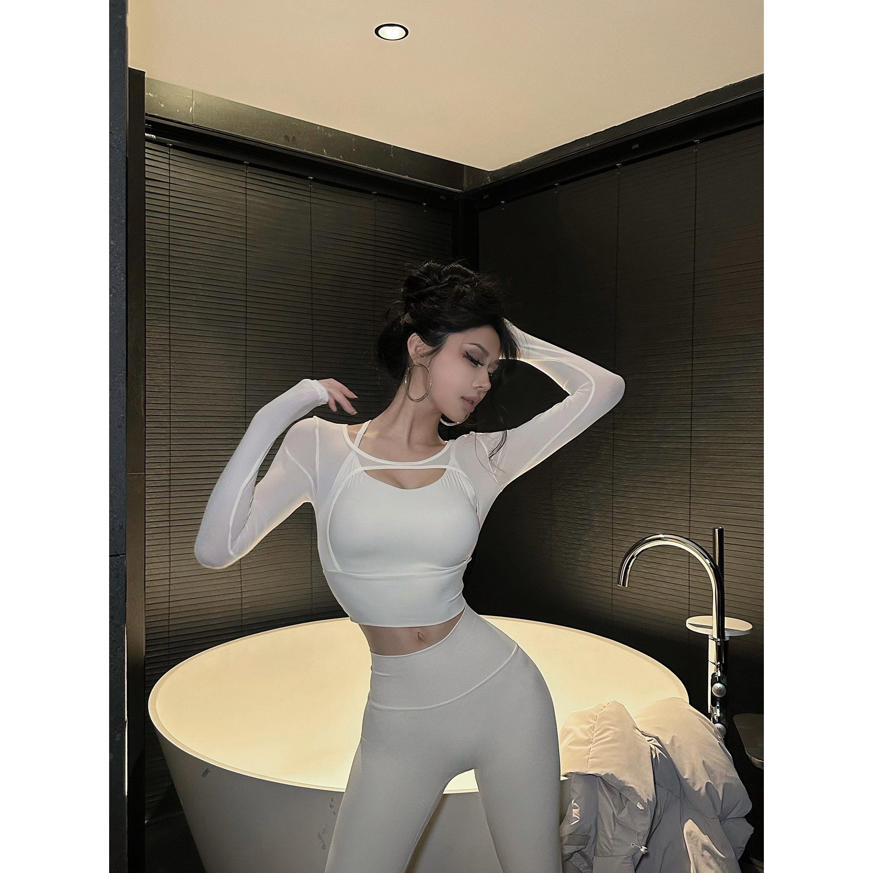 福尔尼斯悦 T恤 性感网纱拼接内搭打底衫 假两件长袖 上衣女2025冬季