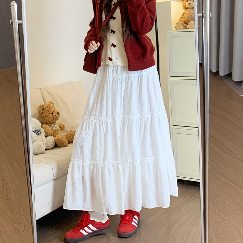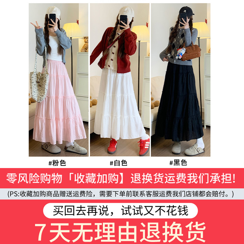 高腰显瘦a字中长款 米白色半身裙女秋冬季 2025新款 春秋蓬蓬蛋糕裙