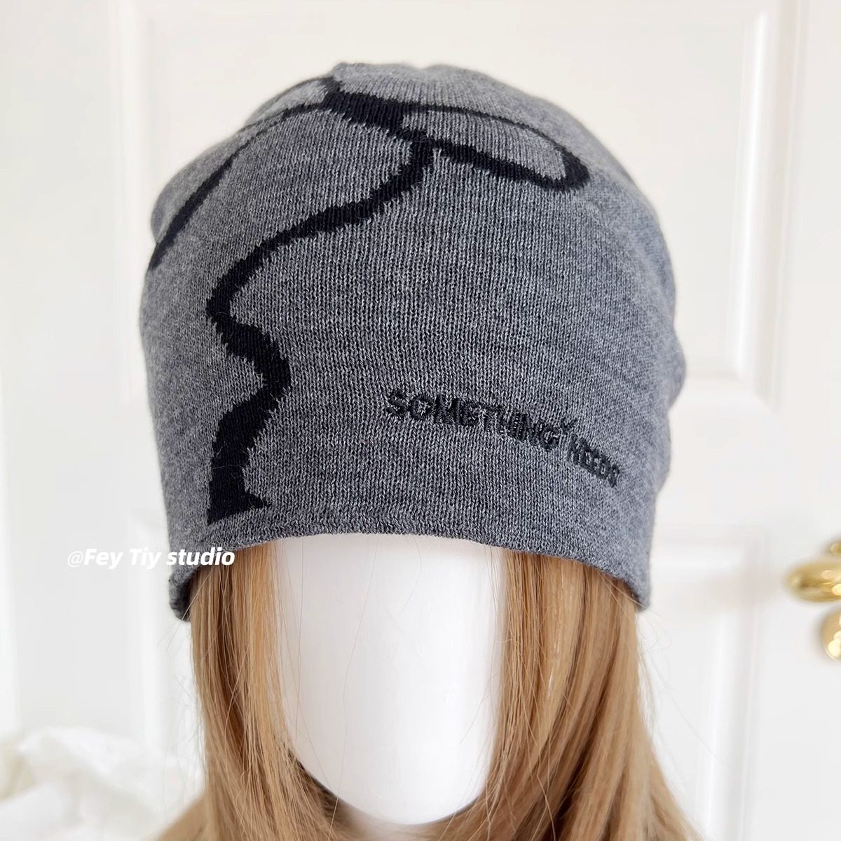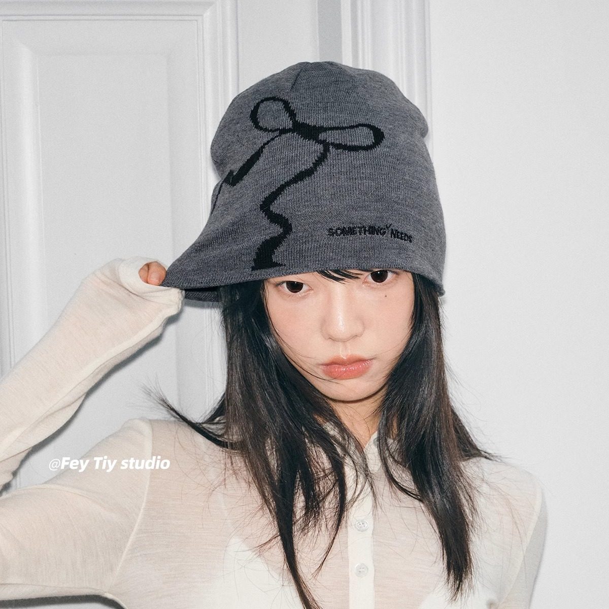 个性 feytiy 蝴蝶结针织帽刺绣百搭小众复古 秋冬保暖包头冷帽时髦