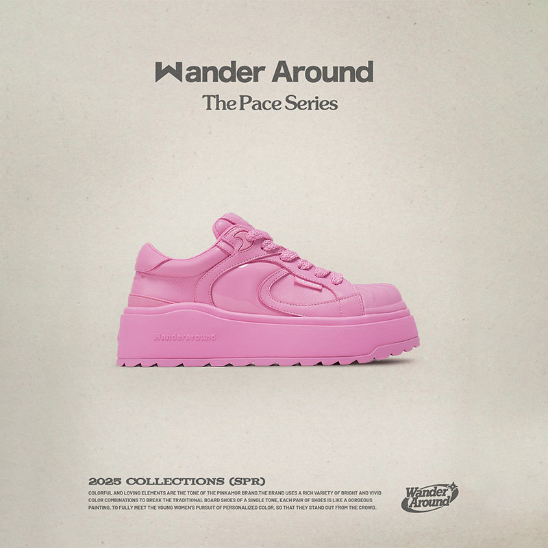 Wander 女 厚底增高粉色贝壳头休闲板鞋 around2025年春季 新款