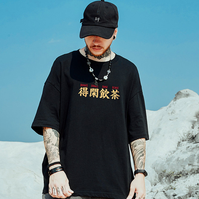 T恤潮牌印花潮流宽松半袖 2025新款 男圆领上衣夏 大码 短袖 夏季 男士