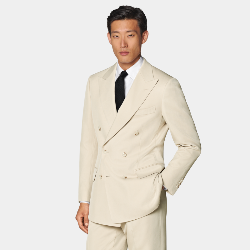 套装 SUITSUPPLY砂砾色S120支羊毛男士 双排扣西装 休闲