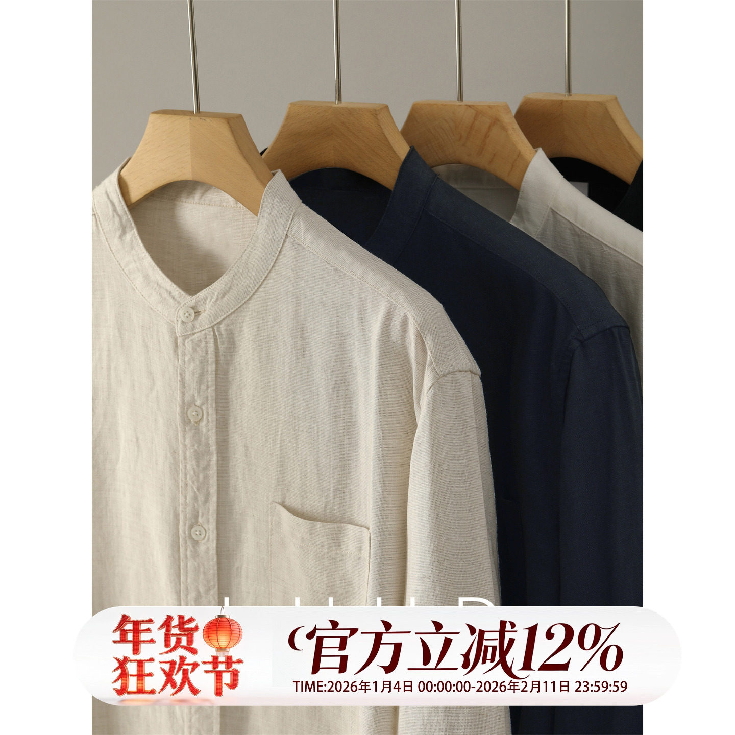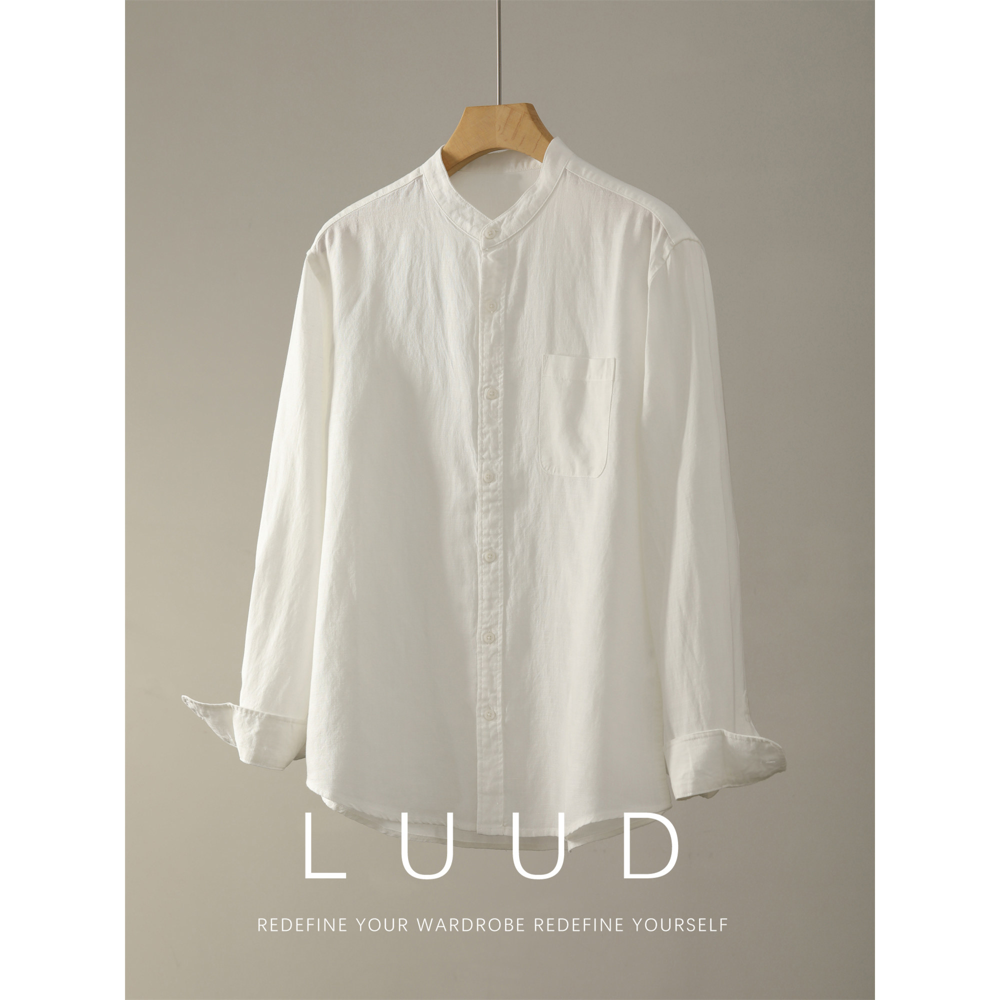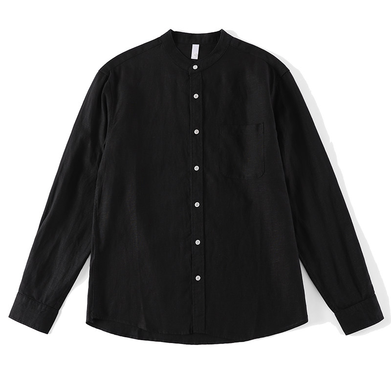 新中式 立领亚麻天丝长袖 衬衫 LUUD 复古儒雅老钱口袋款 百搭衬衣男