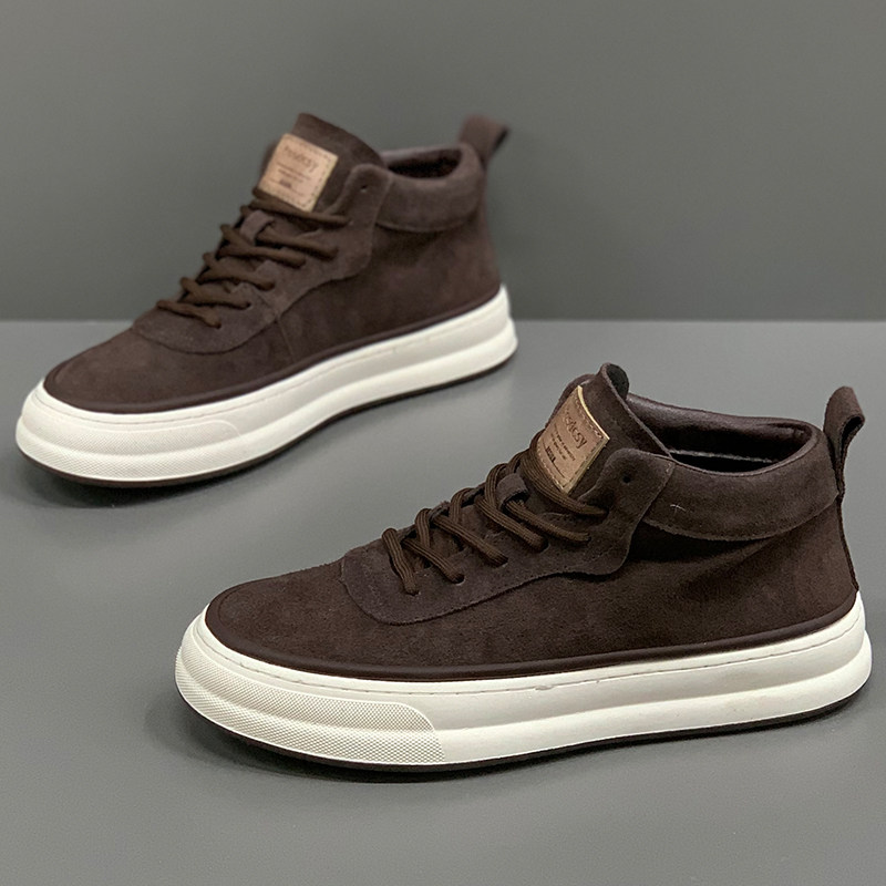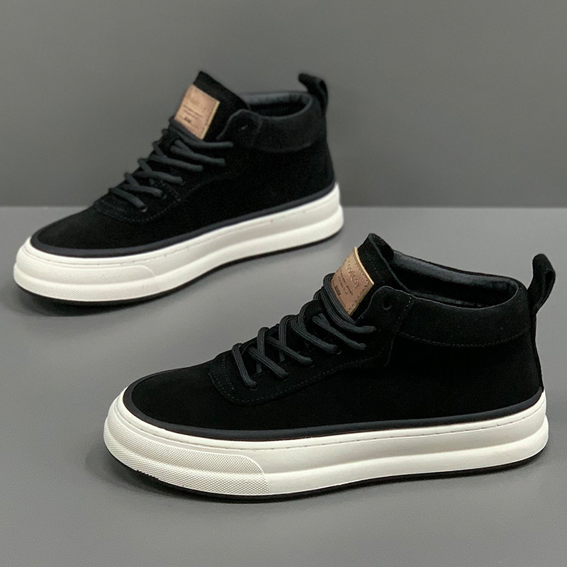 2025新款 秋冬时尚 棉鞋 男鞋 翻毛皮高帮休闲板鞋 软底加绒中帮男短靴