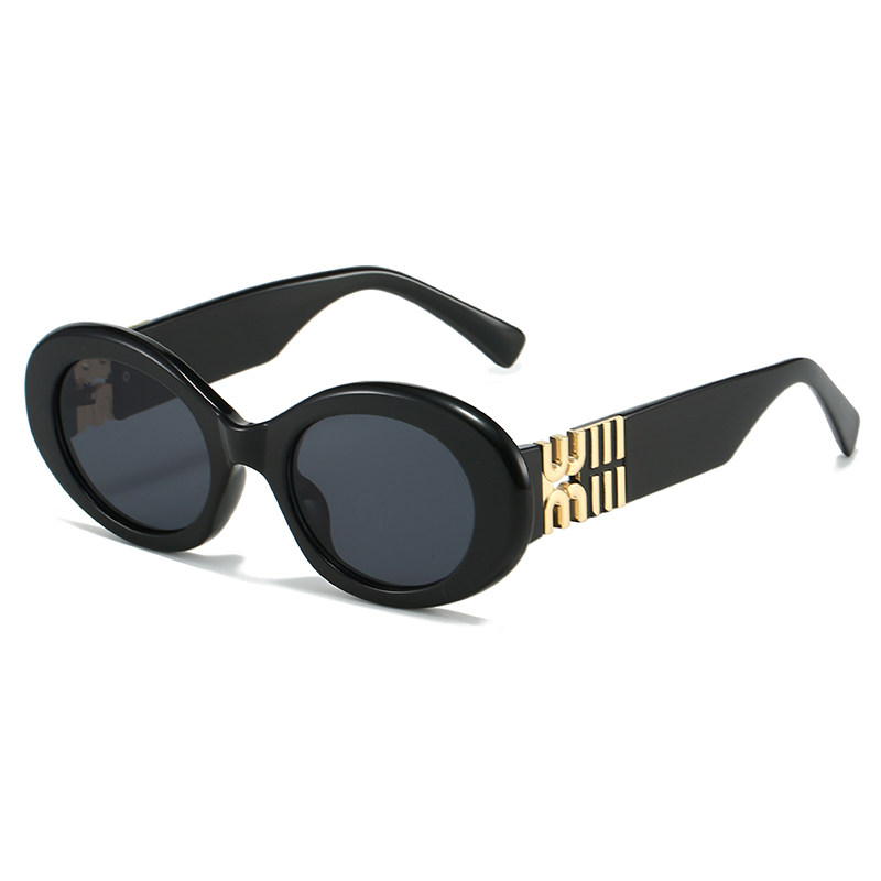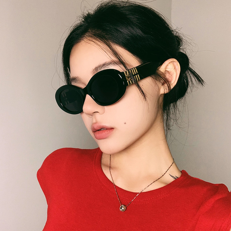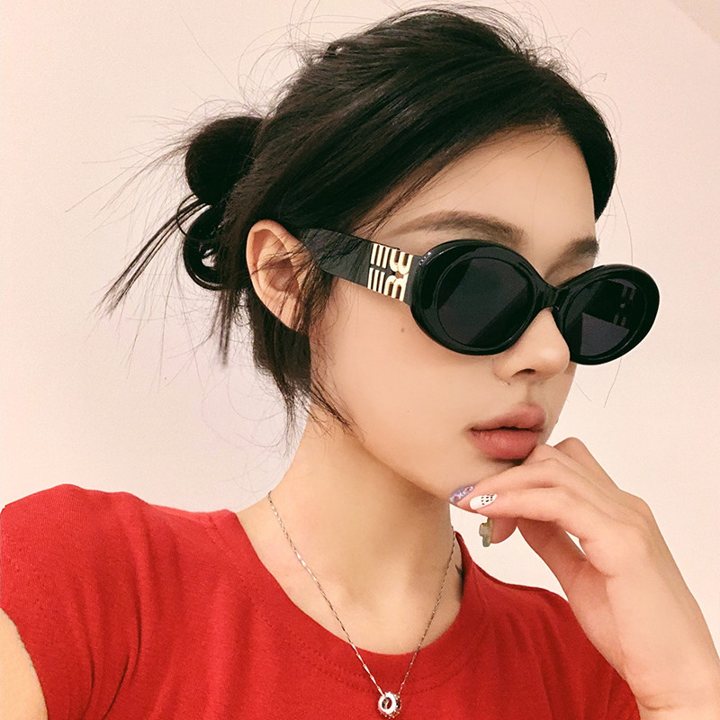 新款 M家网红防晒太阳镜高级感海边度假风潮女椭圆形个性 宽脚墨镜