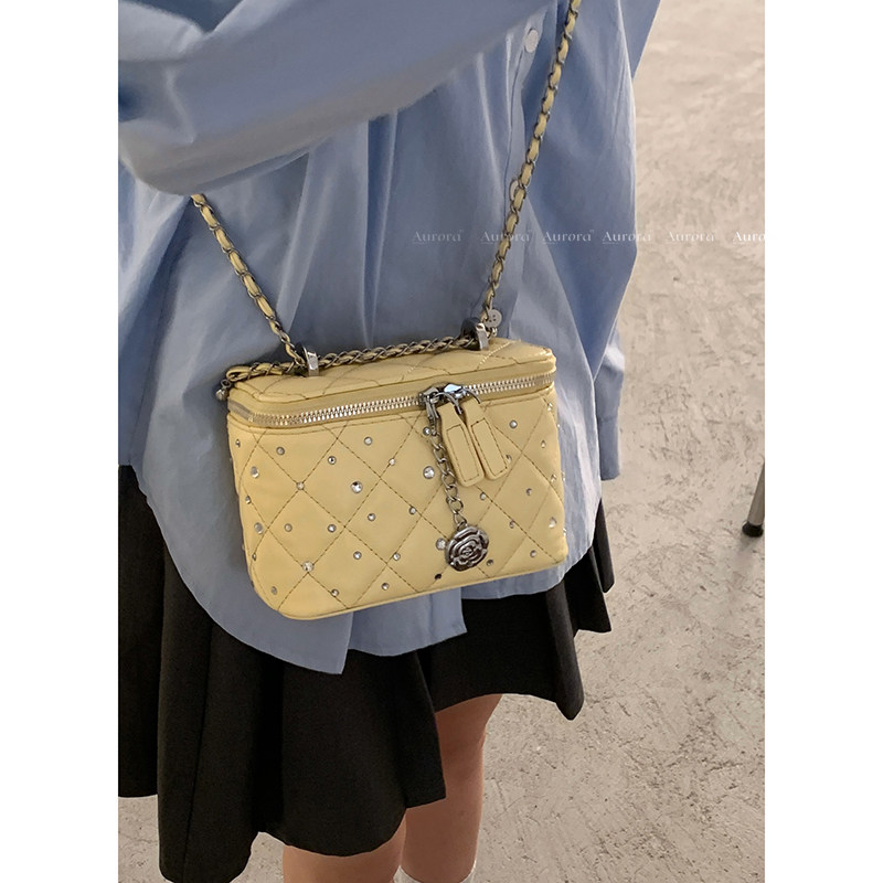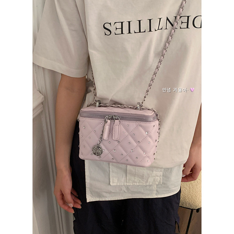夏季 小香风菱格链条包包女2025新款 潮韩国镶钻小方包超火斜挎包