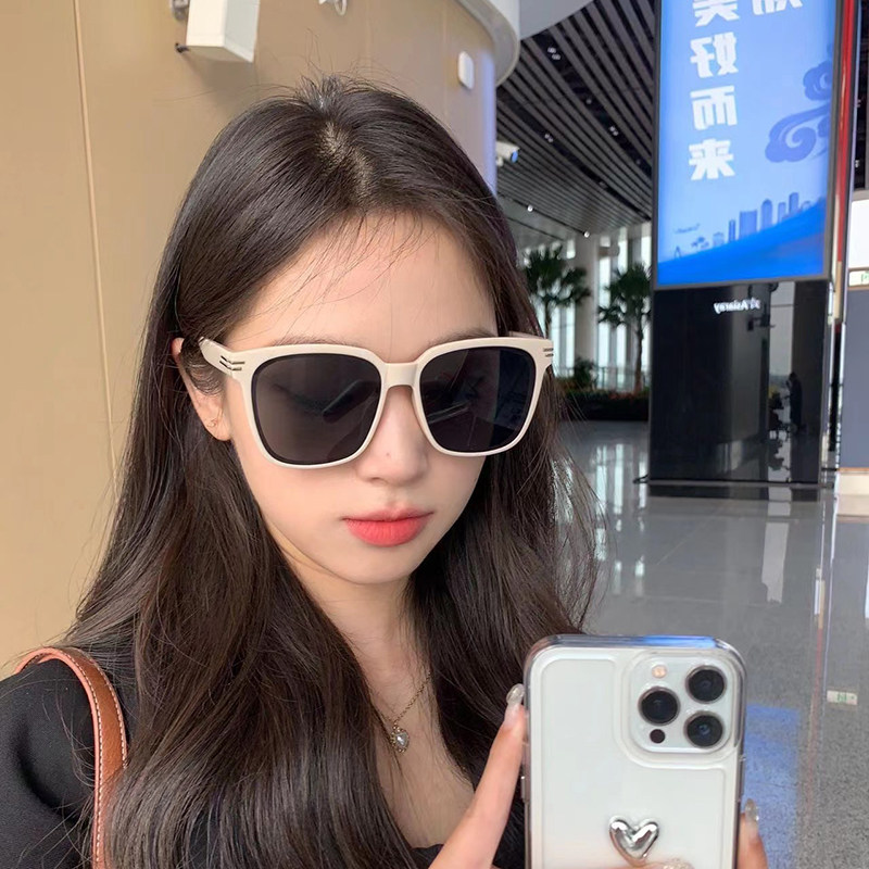 潮网红同款 方框白色墨镜女夏季 防紫外线男大脸显瘦眼镜韩版 太阳镜