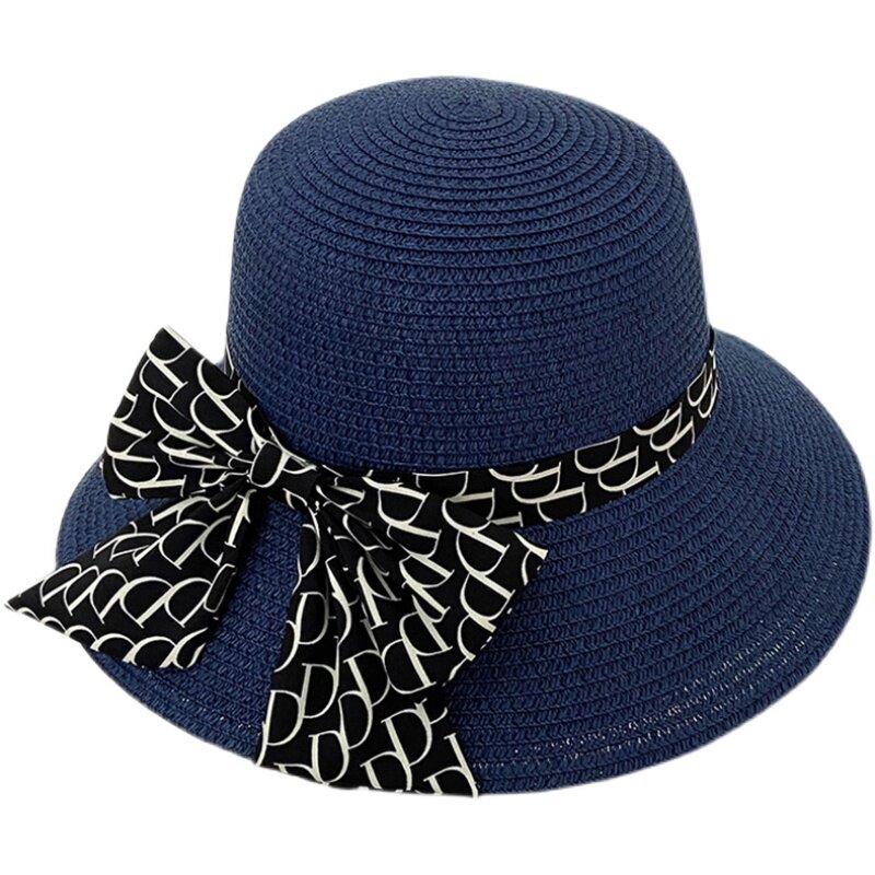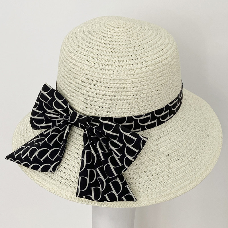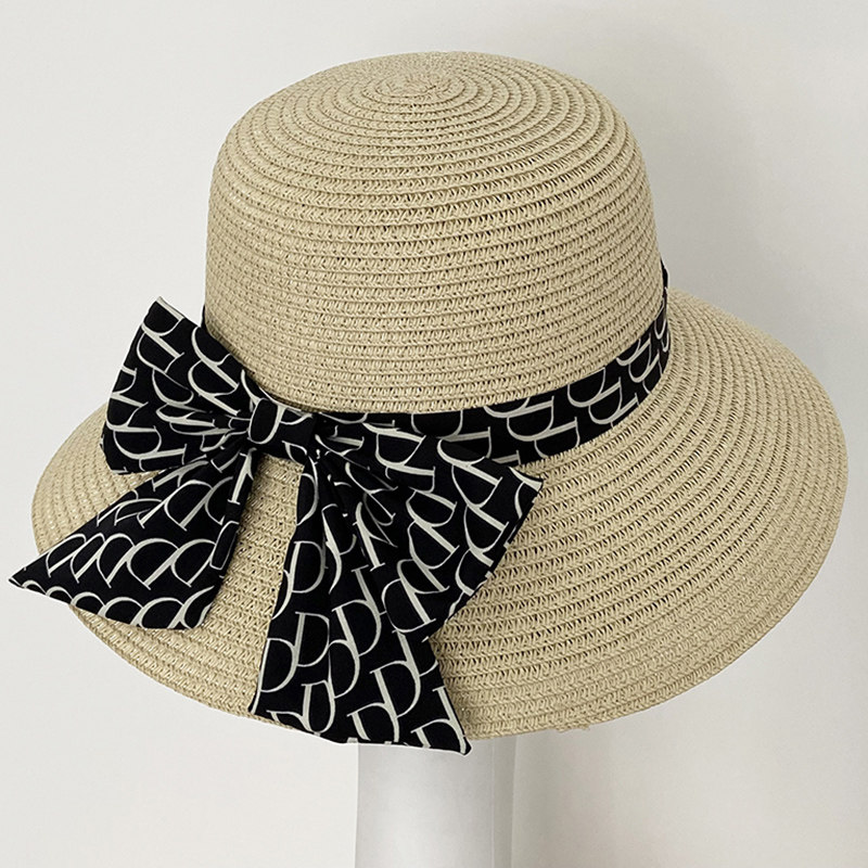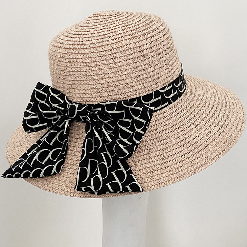 新款 遮阳帽子女夏季 防晒防紫外线沙滩出游草编草帽太阳帽小檐盆帽