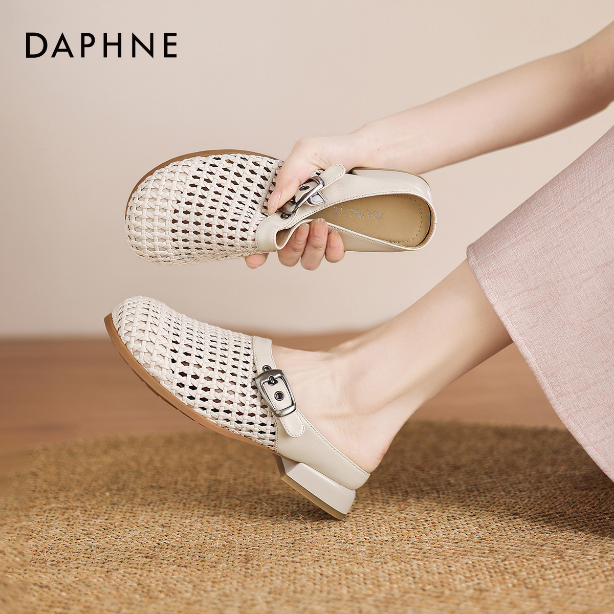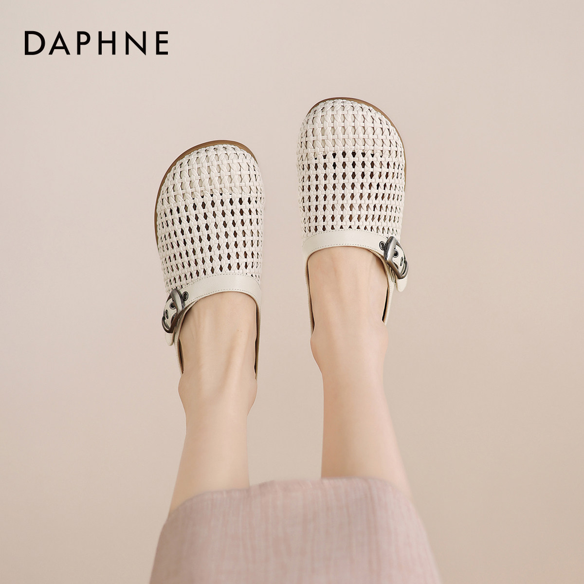 透气低跟凉拖鞋 达芙妮包头拖鞋 夏季 外穿镂空半托女鞋 女款 2026新款
