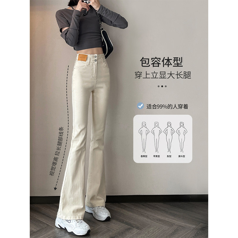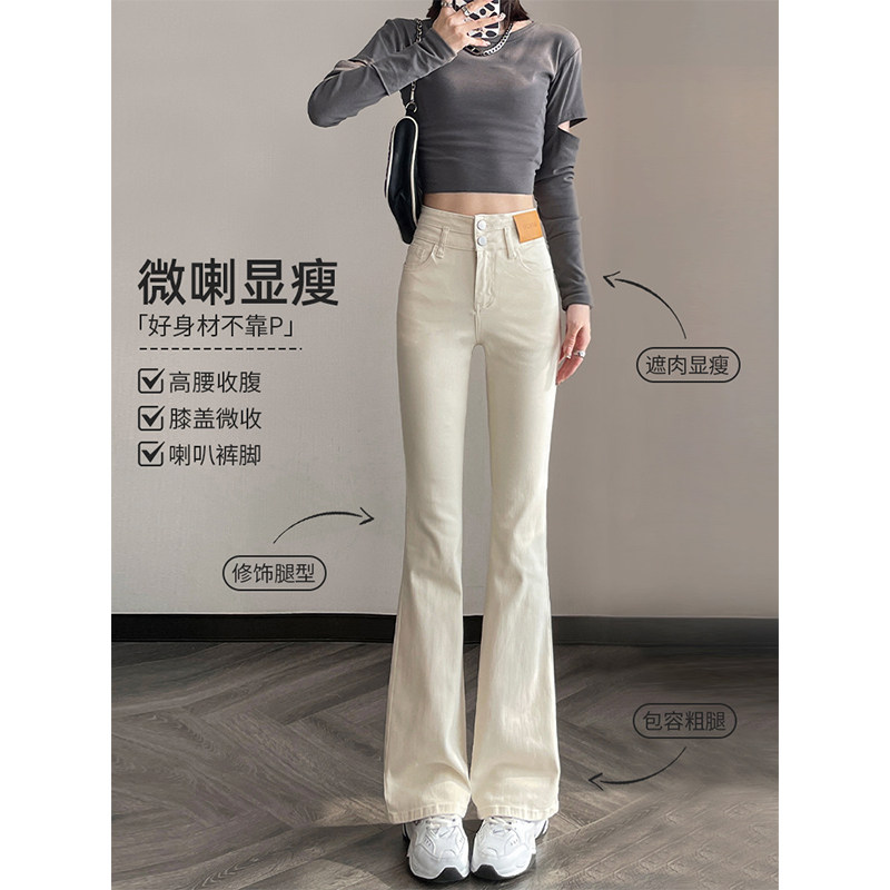 女2026年新款 薄款 爆款 米白色微喇牛仔裤 春秋高腰修身 夏季 喇叭裤 子