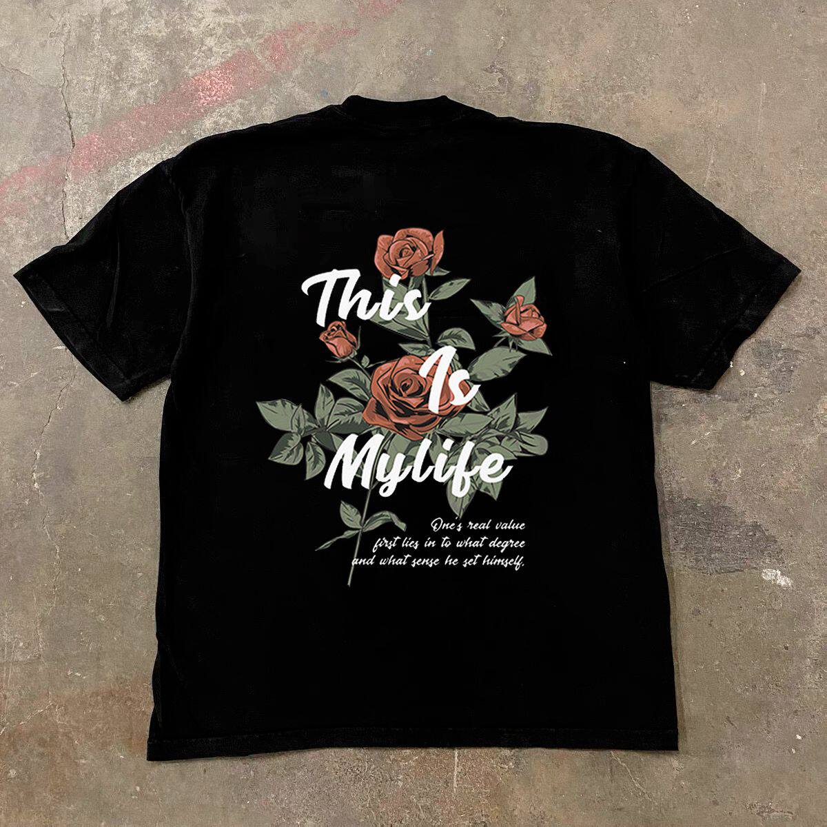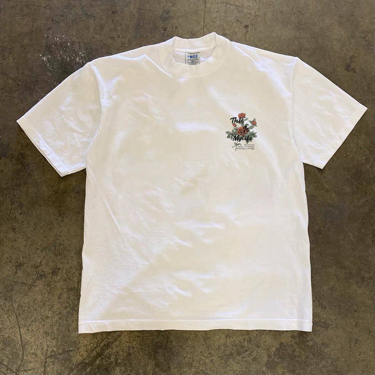 t恤美式 复古花卉印花230G短袖 T恤男夏季 潮牌短袖 潮流宽松圆领半袖
