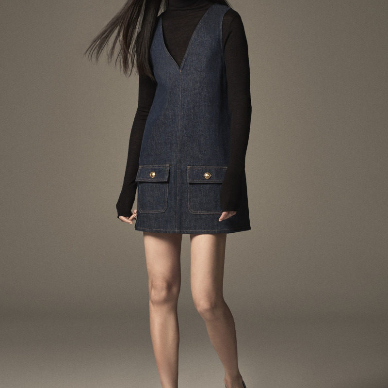 FRAME女士复古休闲时尚 无袖 V领牛仔背心连衣裙