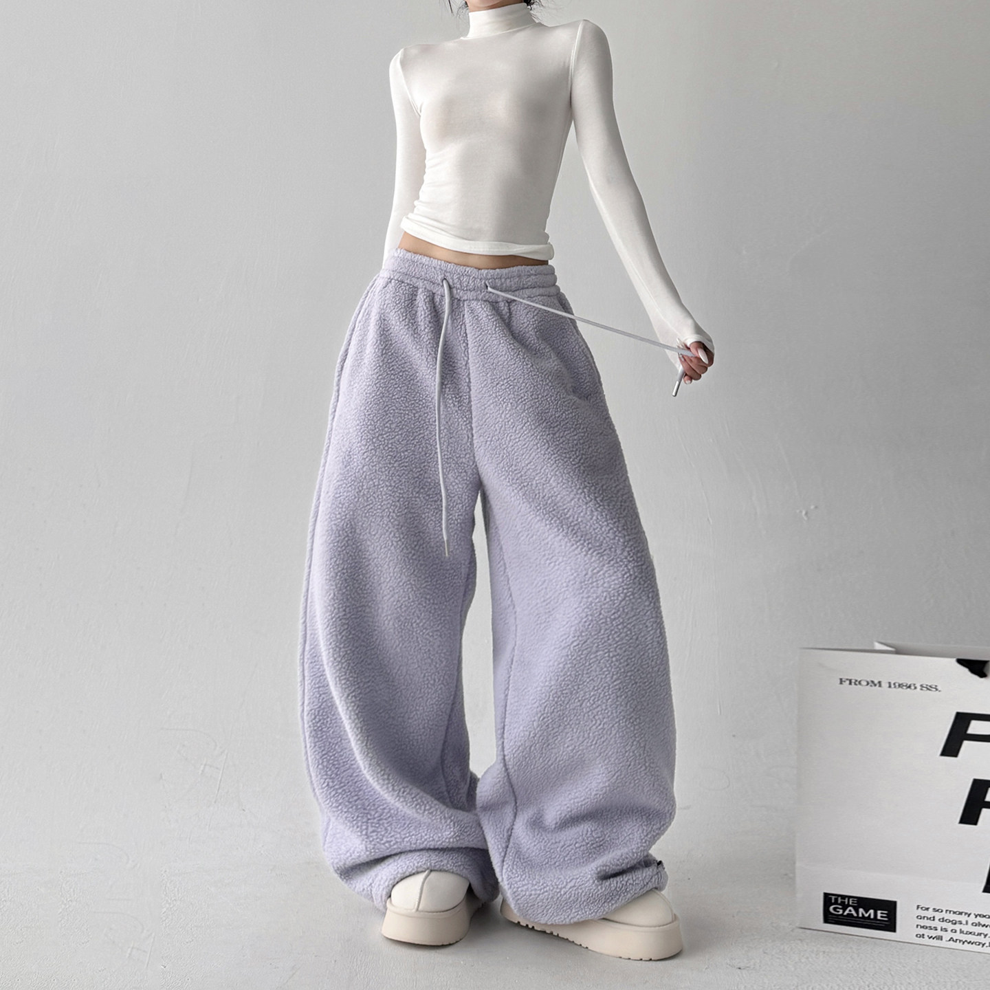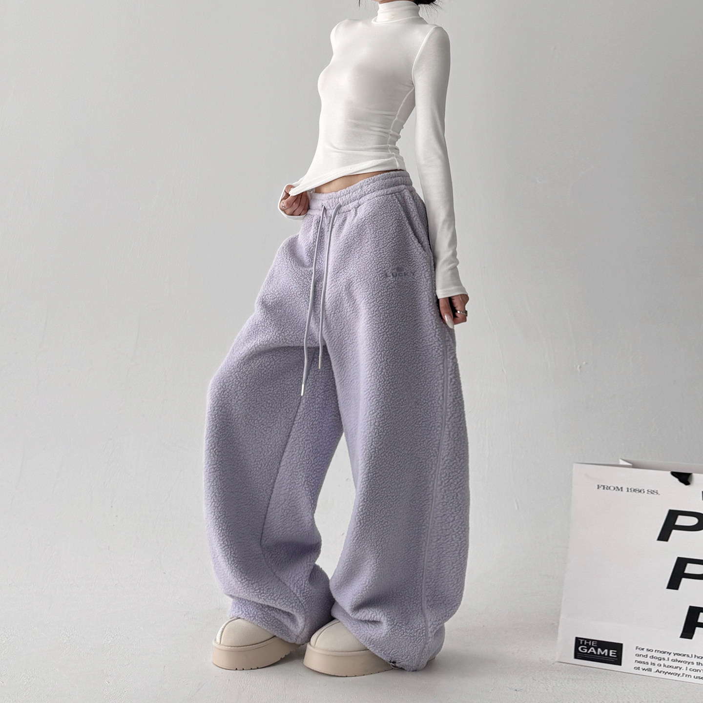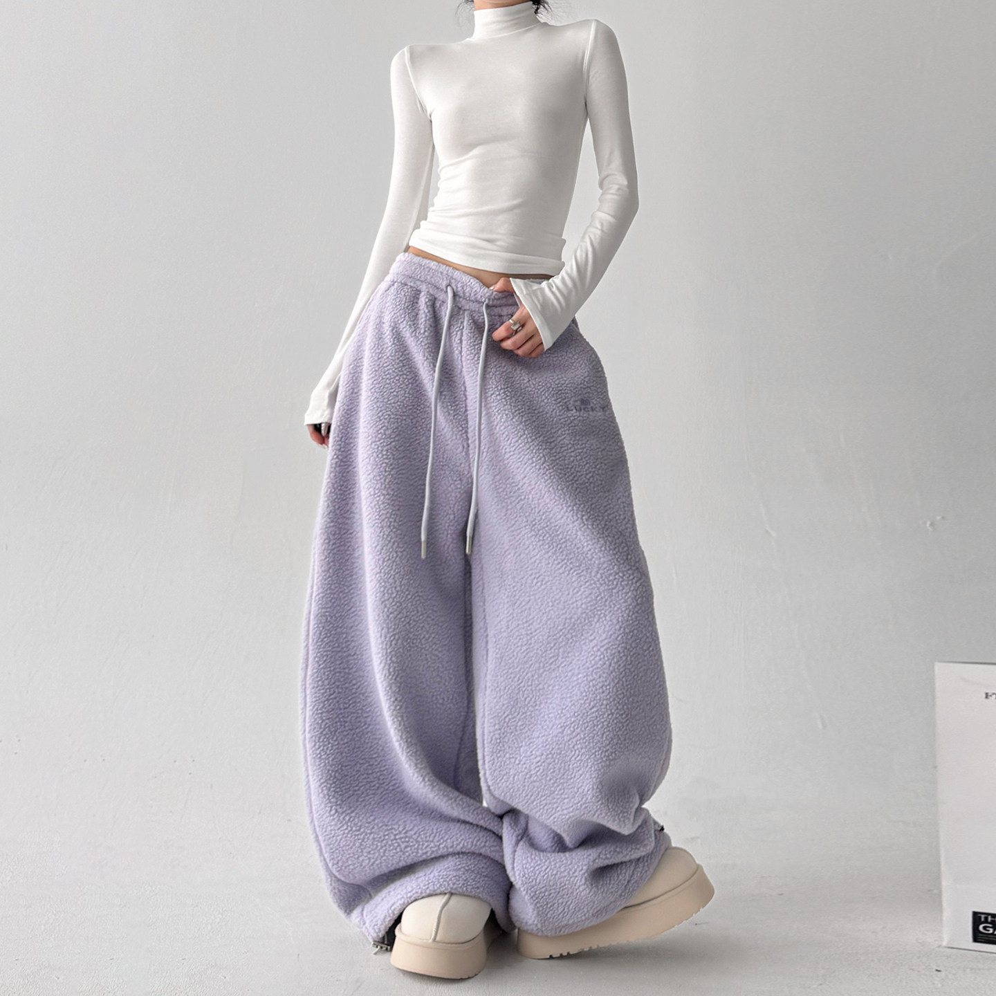 紫色摇粒绒裤 子 加绒加厚休闲宽松保暖休闲加长裤 子女2025冬季 新款