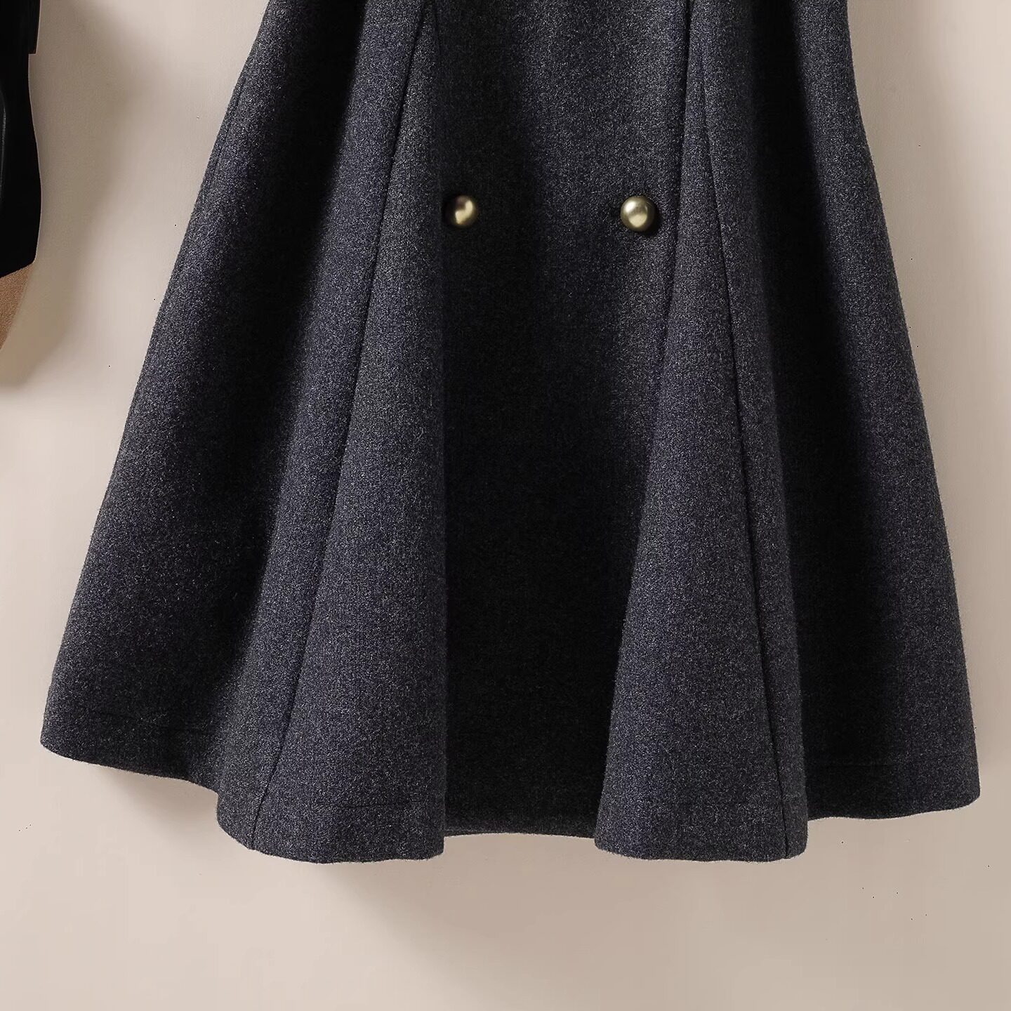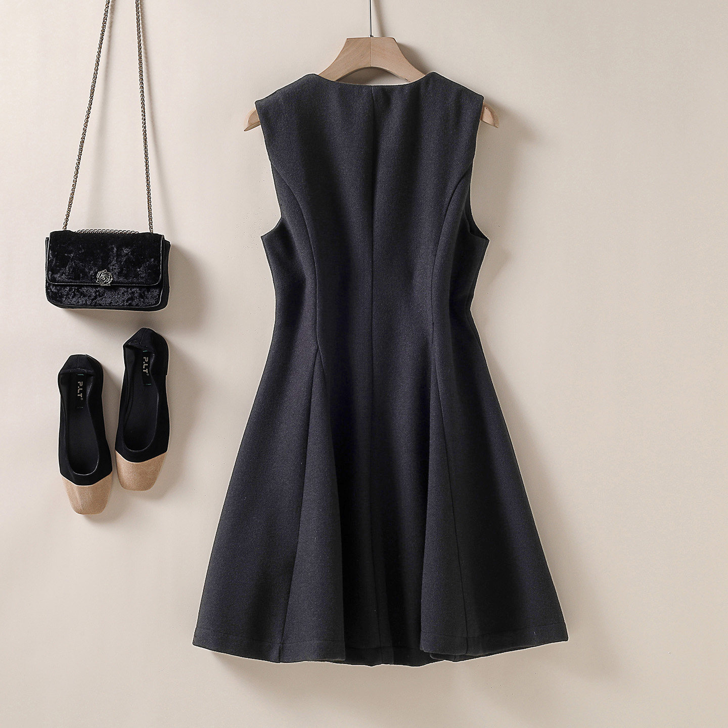 双排扣毛呢背心裙小黑裙 女装 V领轻奢A字显瘦连衣裙 2025秋冬新款