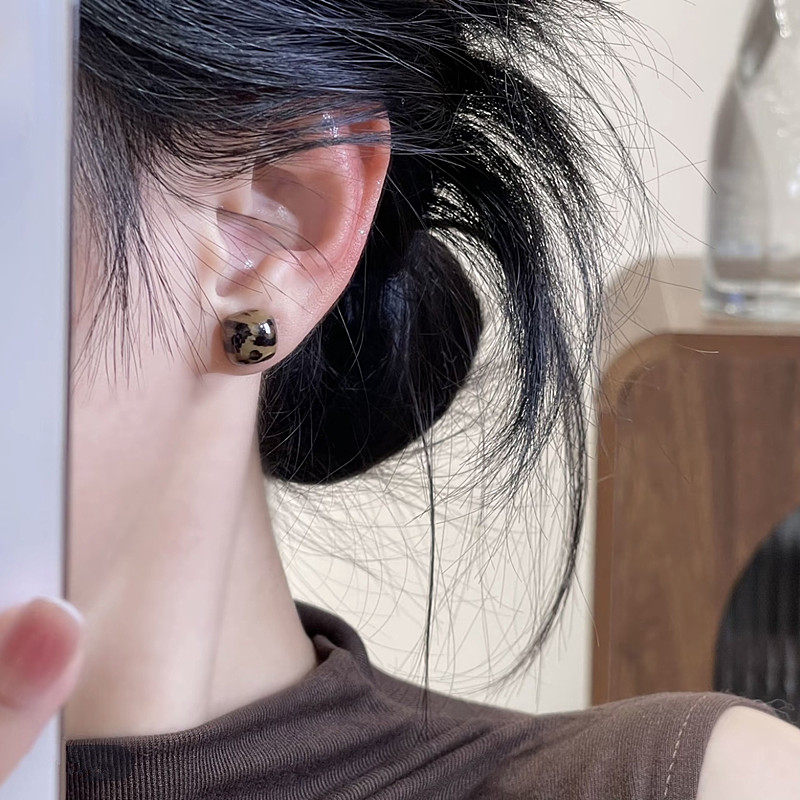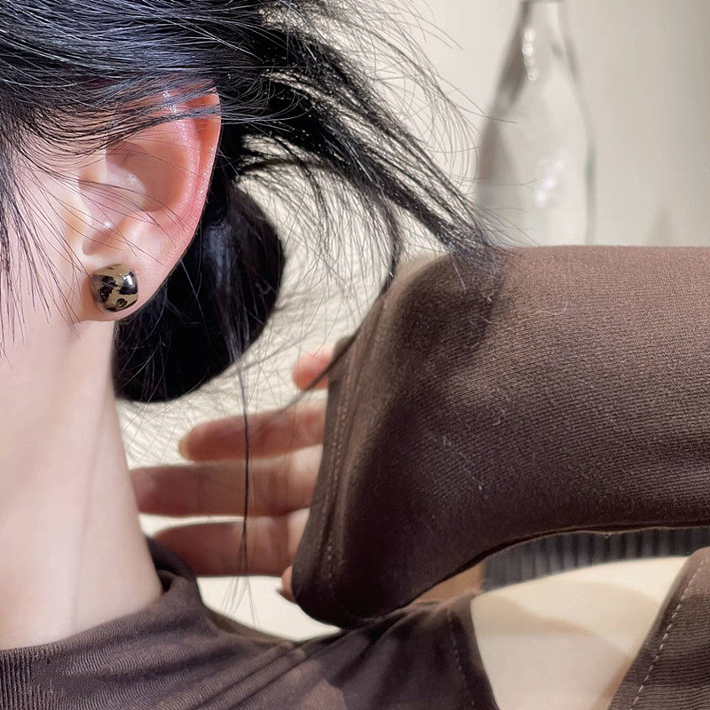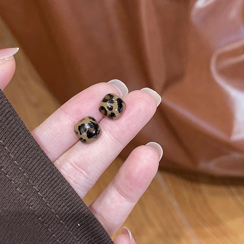 秋冬复古咖色豹纹方形耳钉女轻奢高级感时尚 气质百搭小巧精致耳环