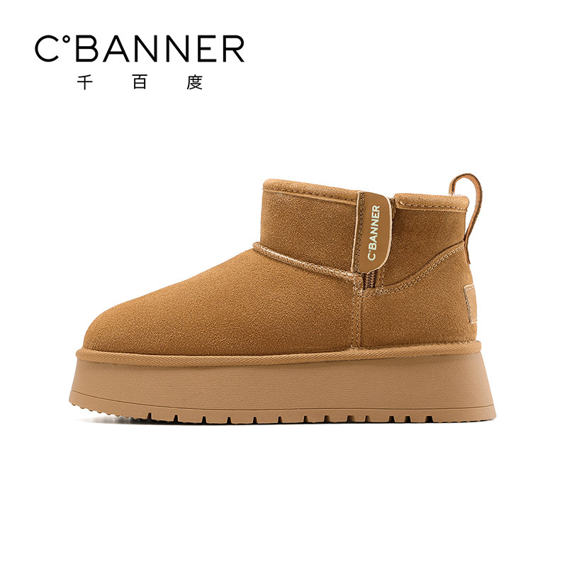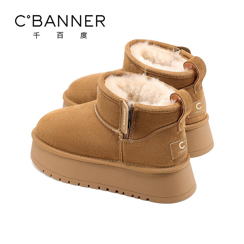 千百度加绒厚底雪地靴女冬季 子女 短筒靴棉鞋 2025新款 防滑东北棉鞋