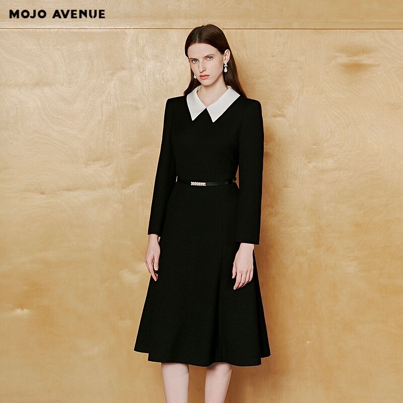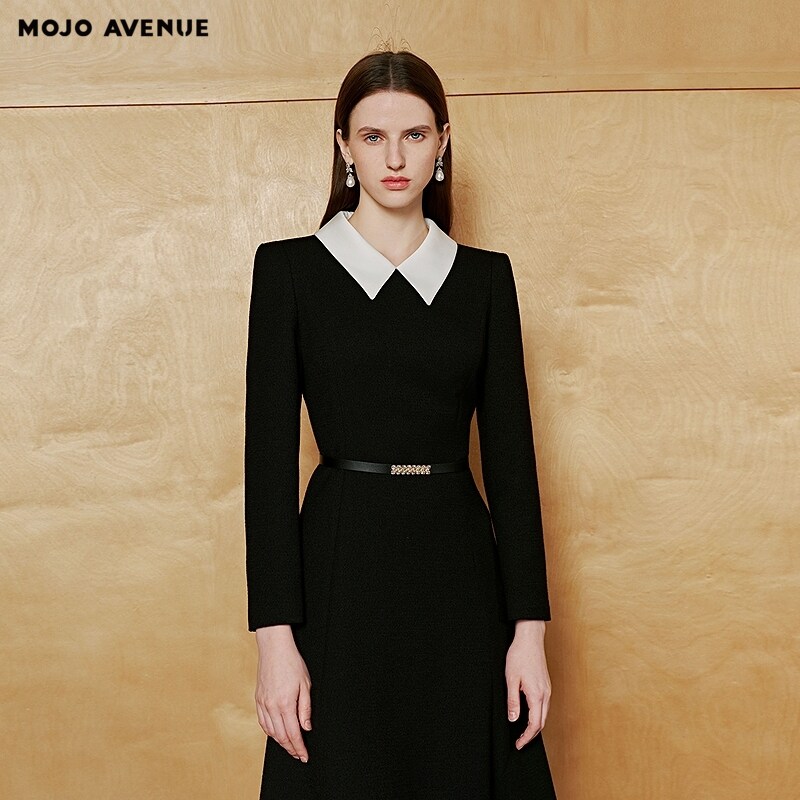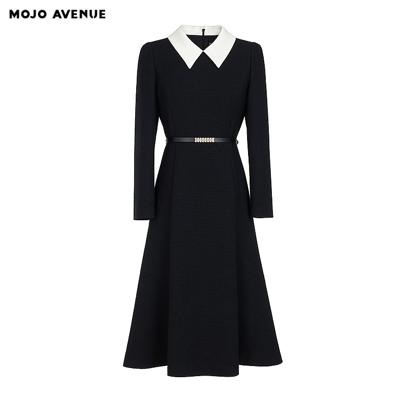 AVENUE莫佐2026春新品 朗姿 MOJO 优雅黑白撞色连衣裙女翻领收腰职