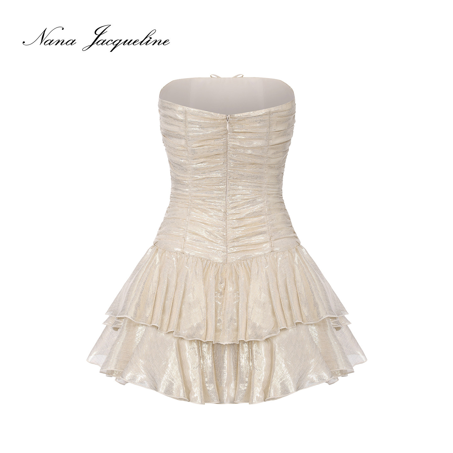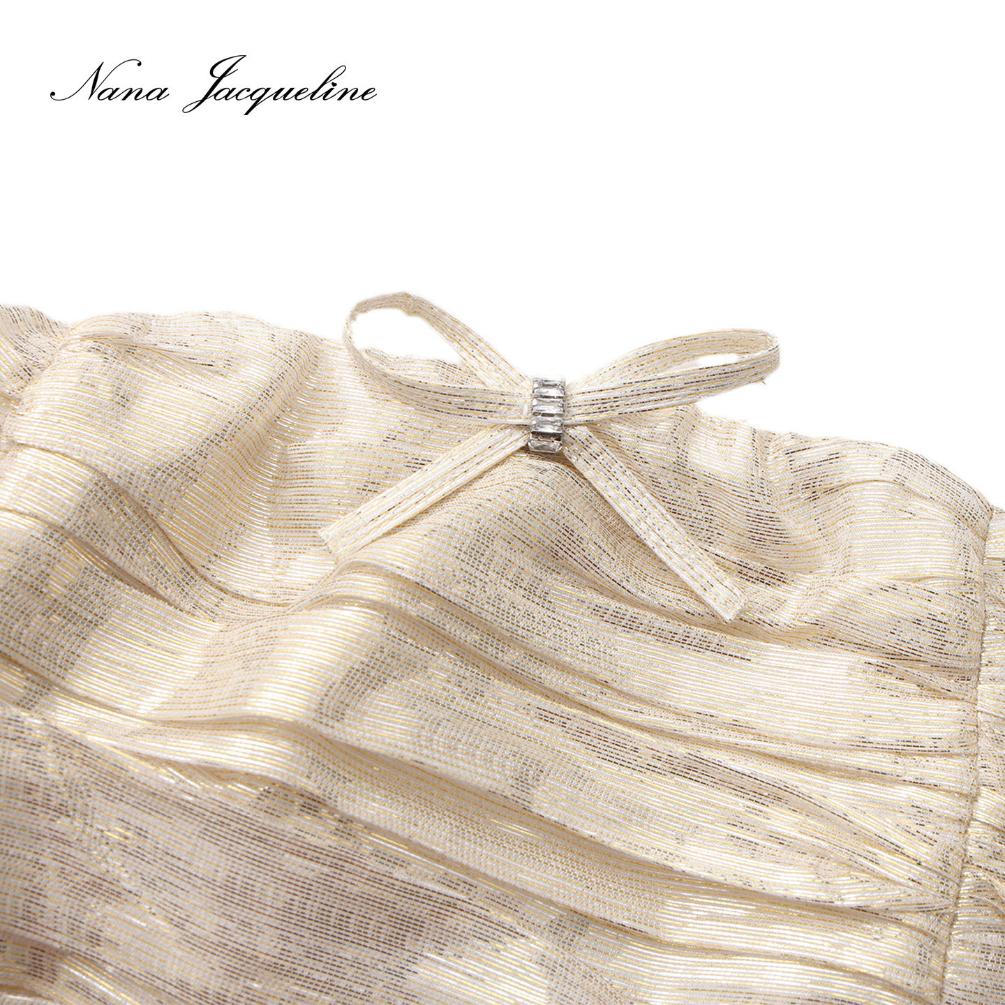 徐如蓝同款 NanaJacqueline金银纱蝴蝶结连衣裙女千金真丝短裙