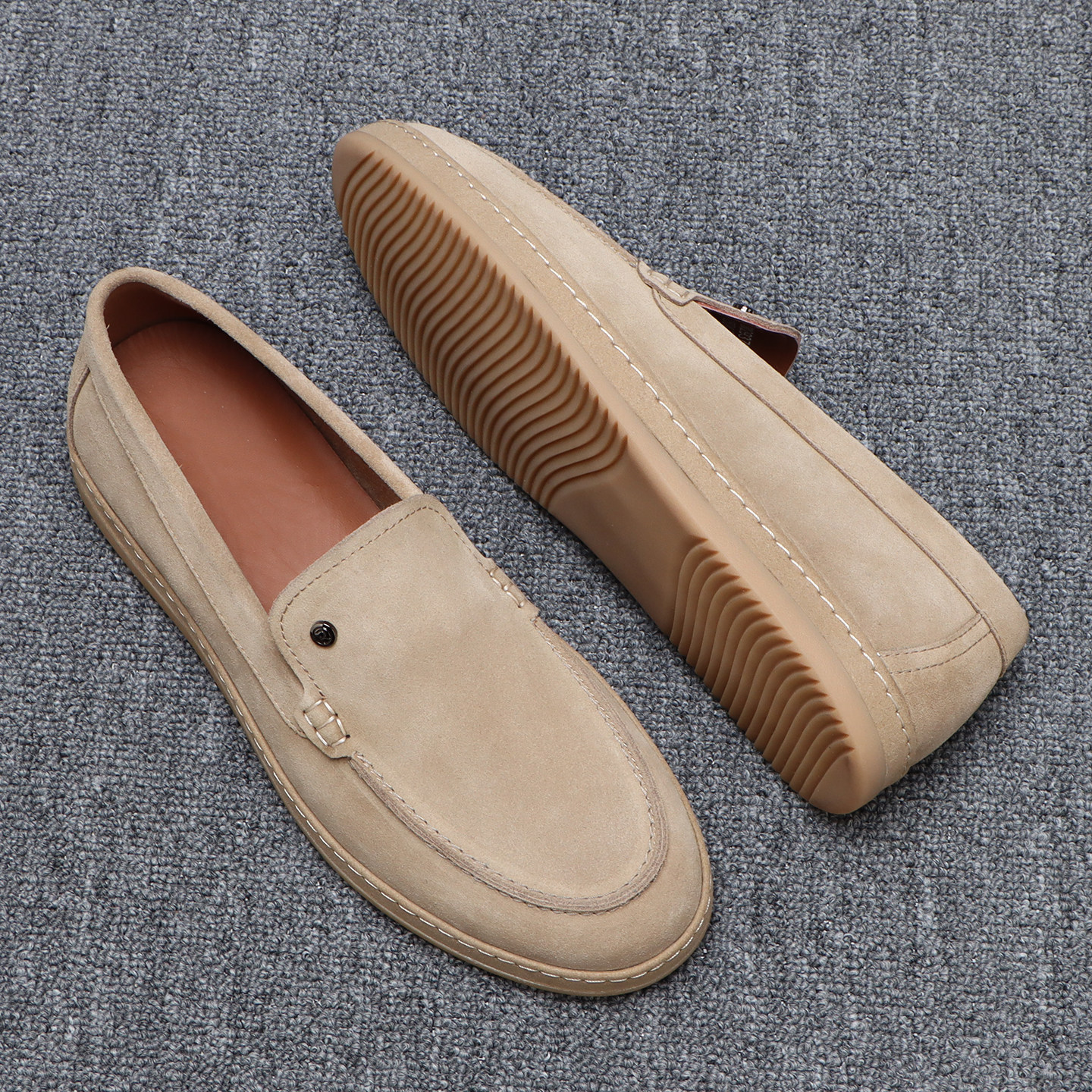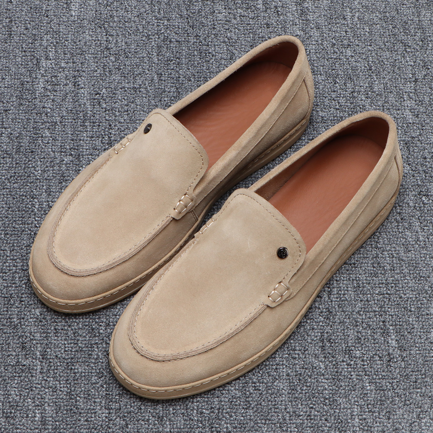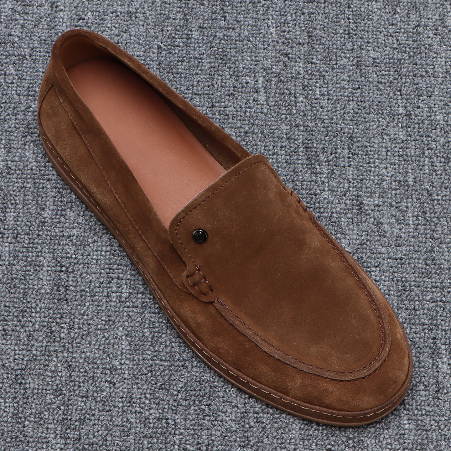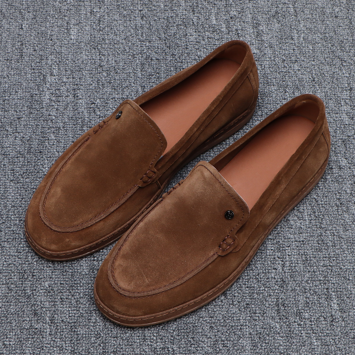 男士 素面百搭一脚蹬休闲皮鞋 时尚 复古棕色真皮乐福鞋 反绒皮豆豆鞋