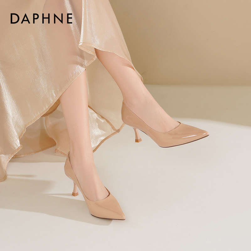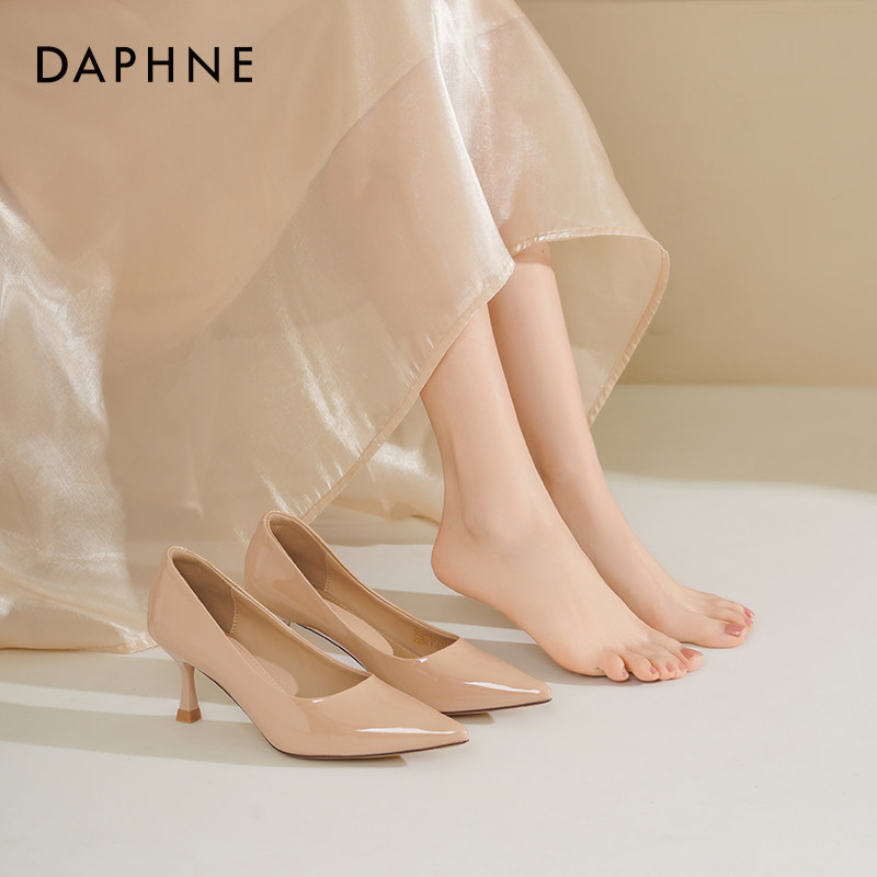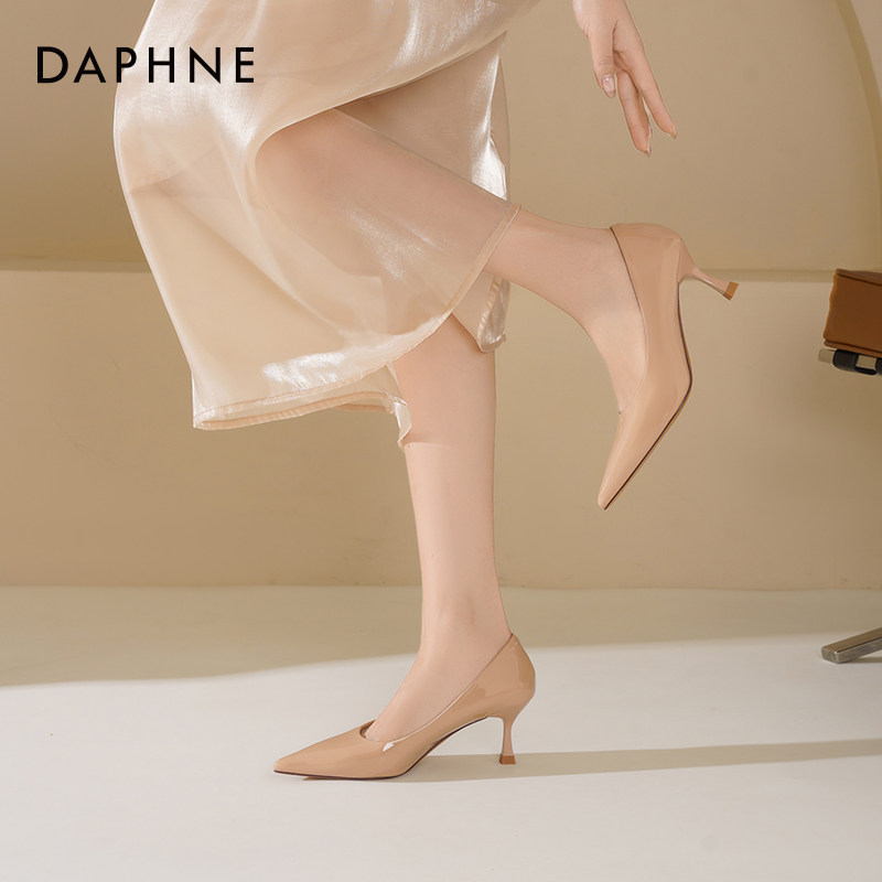 气质高级不累脚通勤工作尖头单鞋 达芙妮裸色高跟鞋 女细跟2026新款