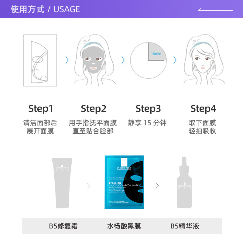 自营 Laroche Posay 理肤泉清痘净肤修护面膜27g 5片