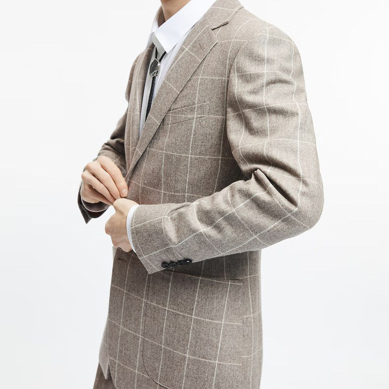 两件套 轻商务含羊毛直筒西裤 G家男装 格纹西服套装 男士 西装 3004I