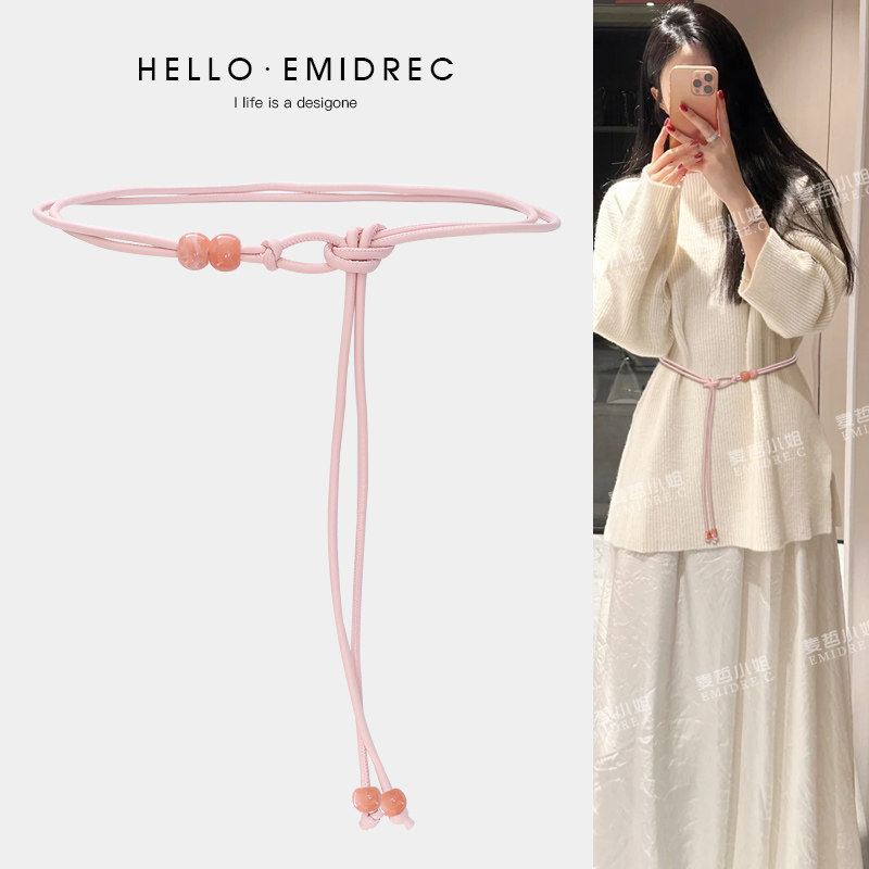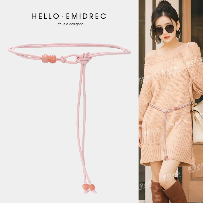 腰链配饰女绳子细腰带编织腰绳装 饰连衣裙配裙子毛衣大衣粉色百搭