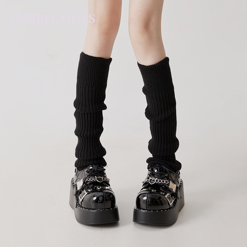 purpleguys灰色针织小腿套女秋冬保暖日系y2k辣妹踩脚jk堆堆袜套