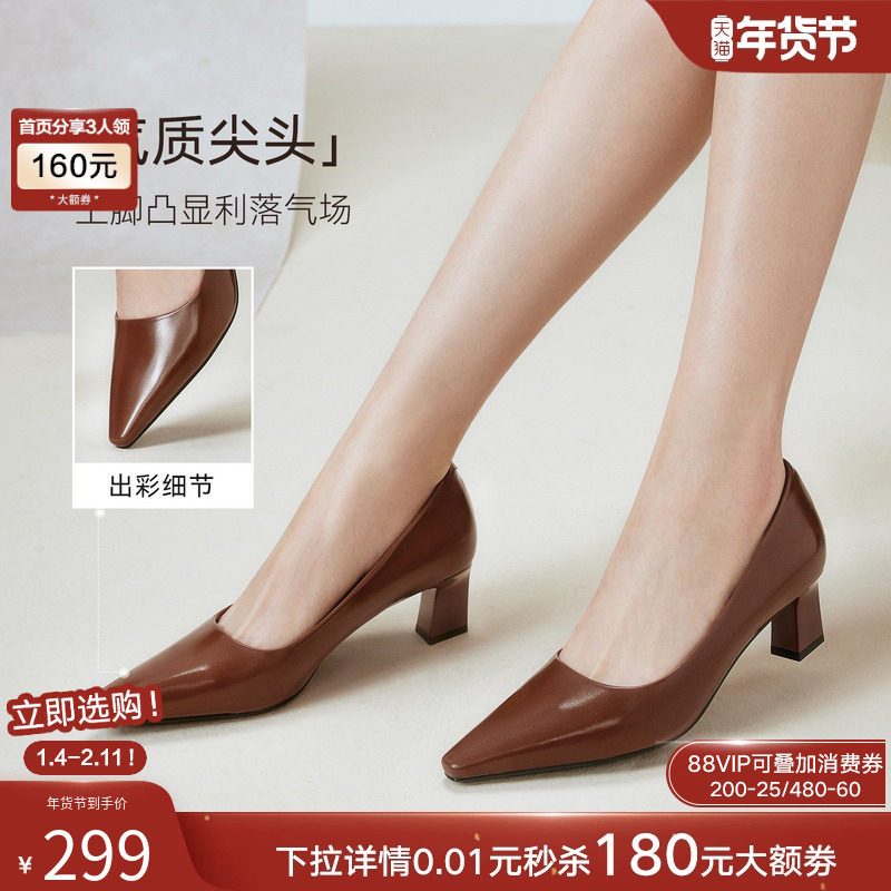 不累脚粗跟尖头女浅口单鞋 百思图25秋商场新款 裸色高跟鞋 B2616CQ5