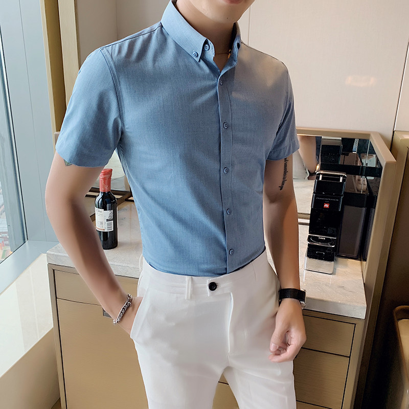 长袖 修身 衬衫 正装 男士 质感灰色西服内搭衬衣帅气韩版 商务短袖 寸衣