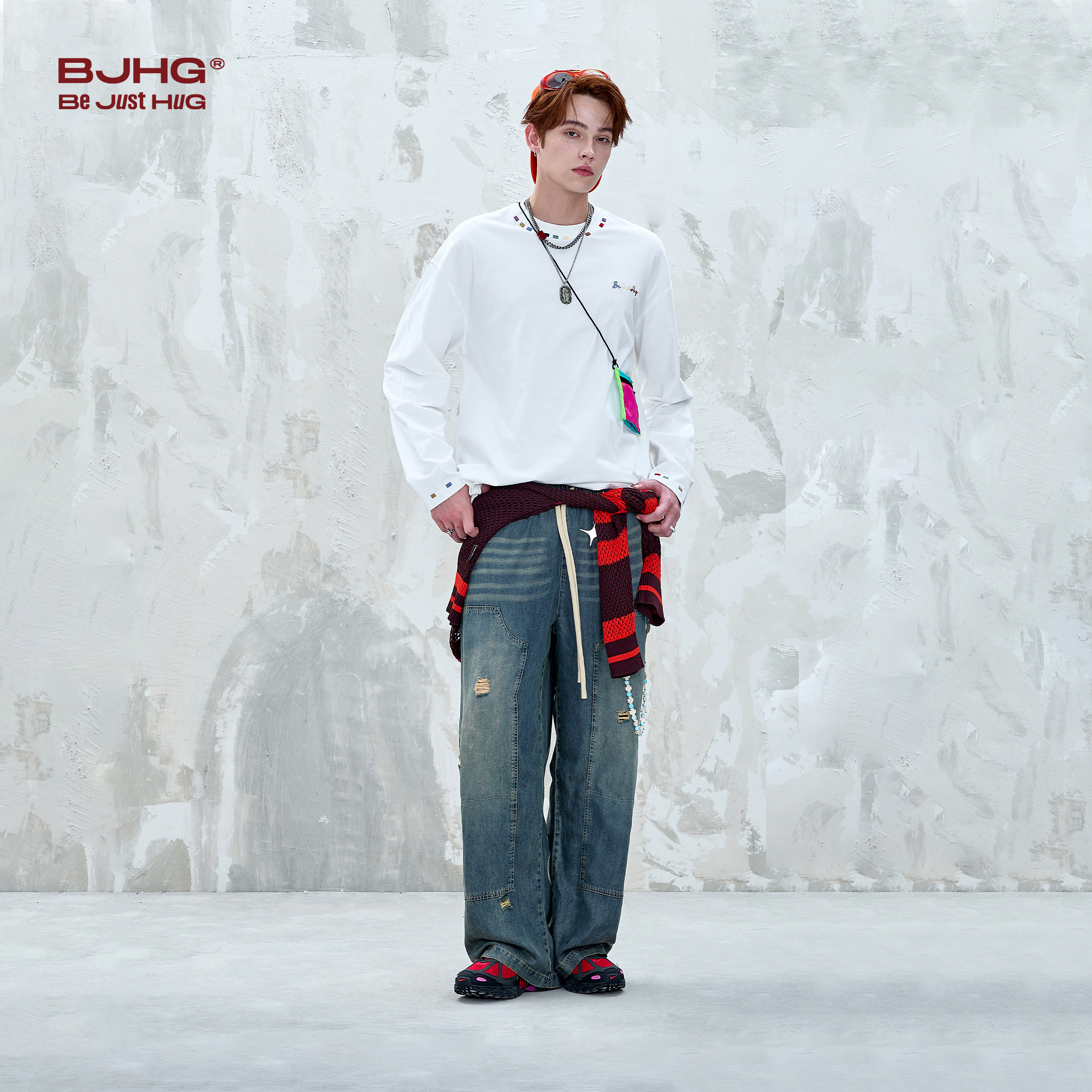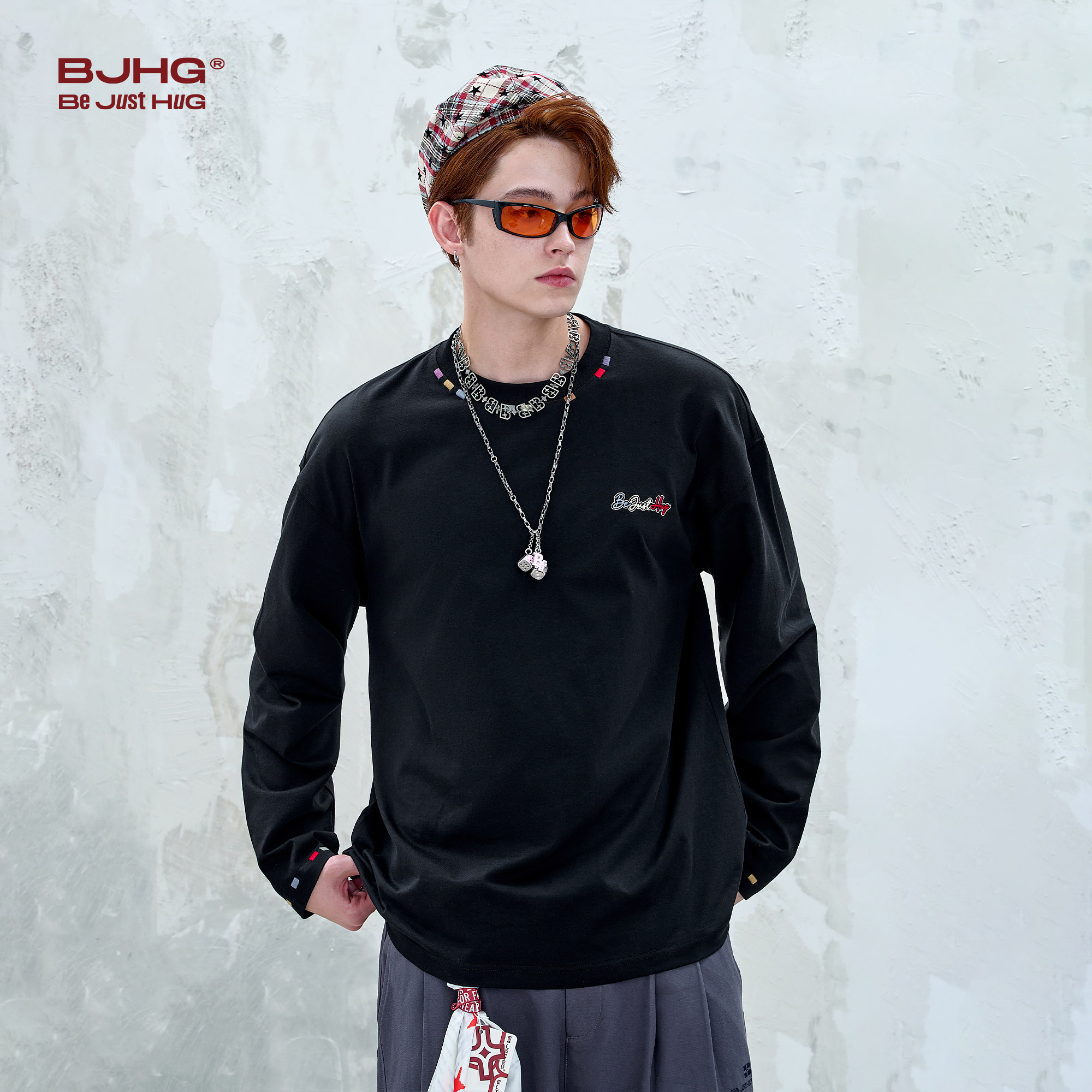 t恤卫衣男款 春秋季 美式 BJHG不计后果白色纯棉长袖 复古打底衫 T恤女