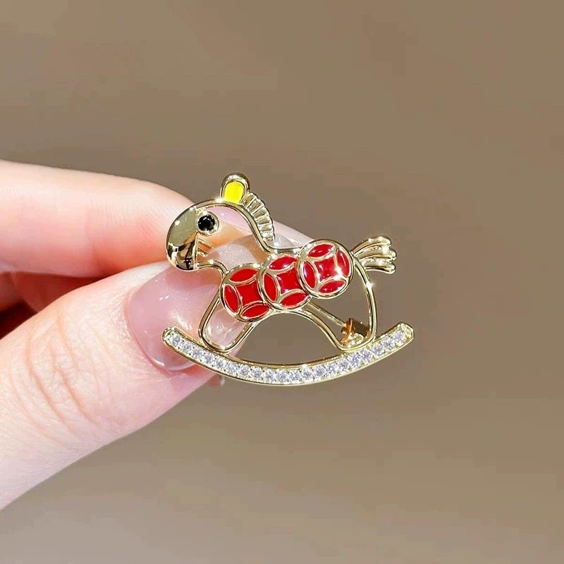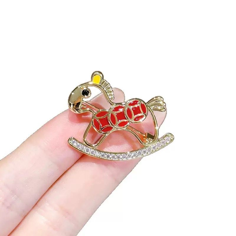2026新年生肖马年铜钱木马胸针简约轻奢时尚 个性 可爱小马胸花配饰