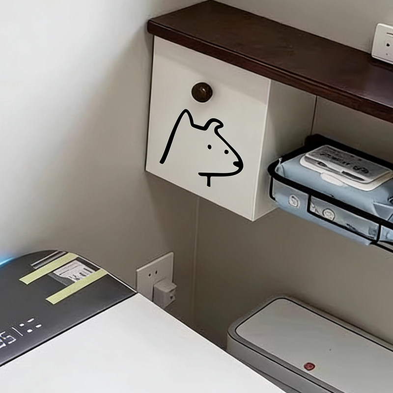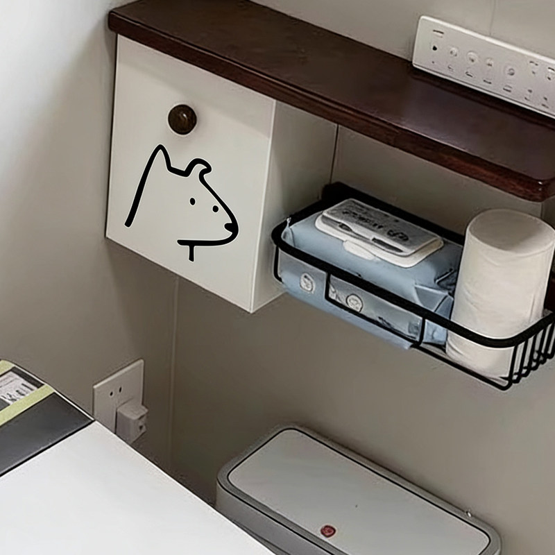 线条小狗卫生间置物架中古风装 饰纸巾盒姨妈巾卫生巾收纳盒卷纸盒