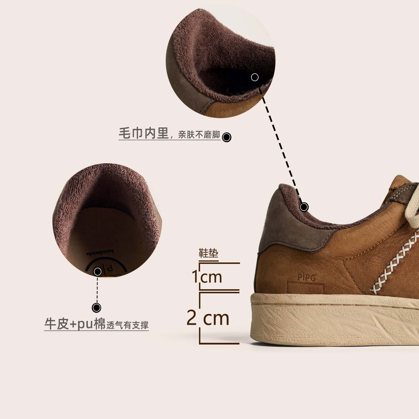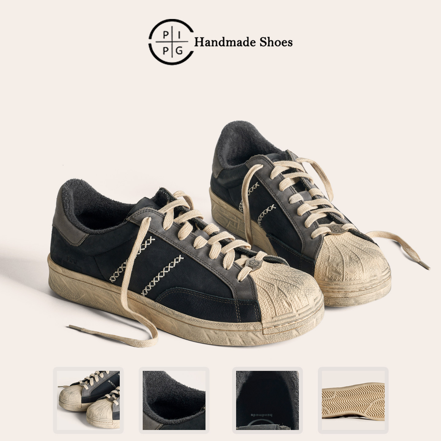 水洗做旧运动鞋 PIPG复古贝壳头休闲板鞋 男百搭老钱风 舒适透气