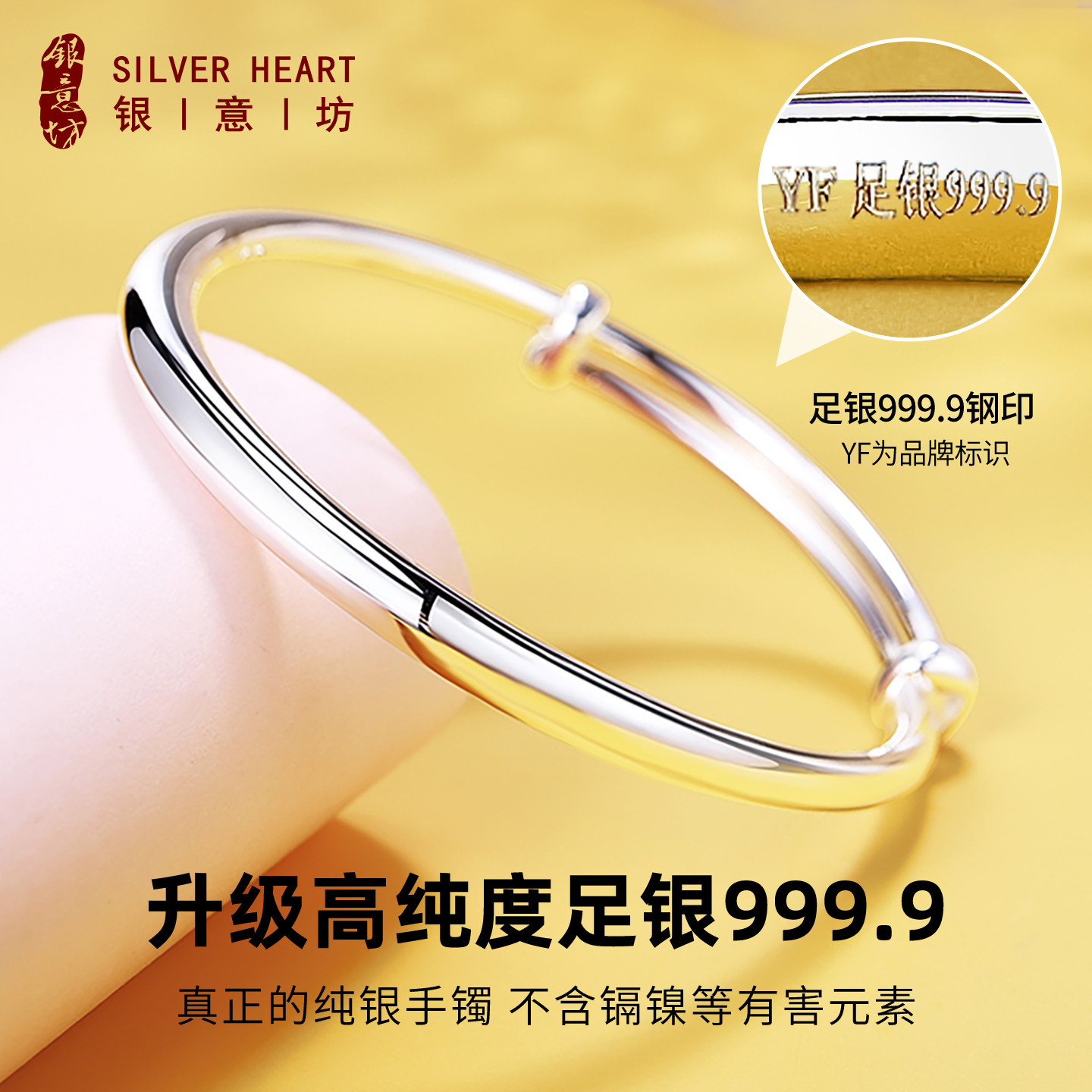 银手镯女9999纯银2025新款 实心素圈银镯子妈妈款 生日新年礼物女生