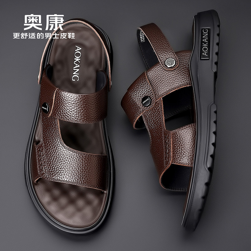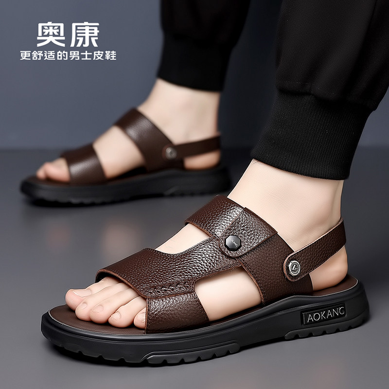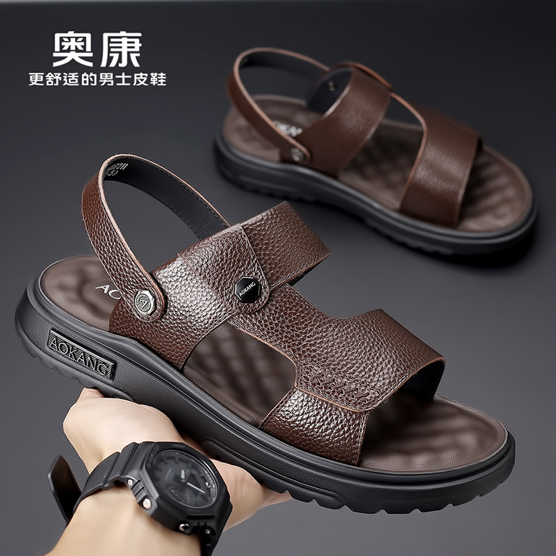 软底防滑凉拖鞋 奥康凉鞋 开车 真皮休闲透气沙滩鞋 男士 男款 2026夏季