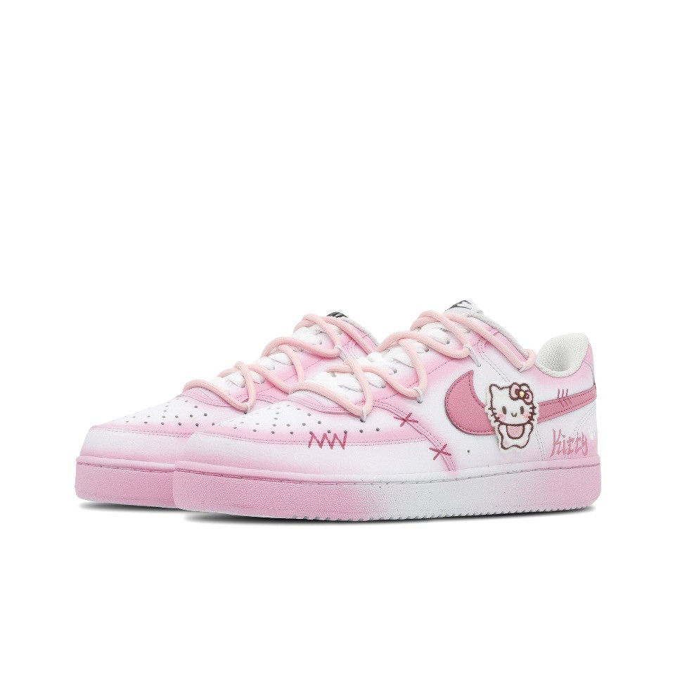 Nike 防滑耐磨 Court 定制球鞋 哈喽凯蒂 动漫卡通 粉白女子板鞋