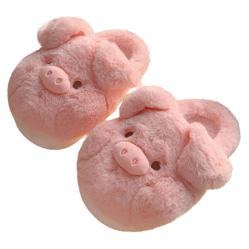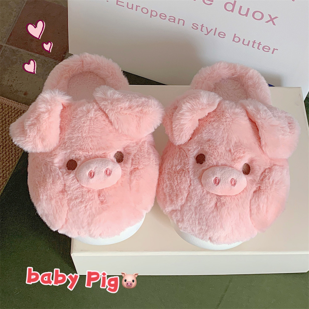 可爱粉色小猪棉拖鞋 冬季 保暖儿童毛毛鞋 细细条 女童宝宝家居鞋 ins