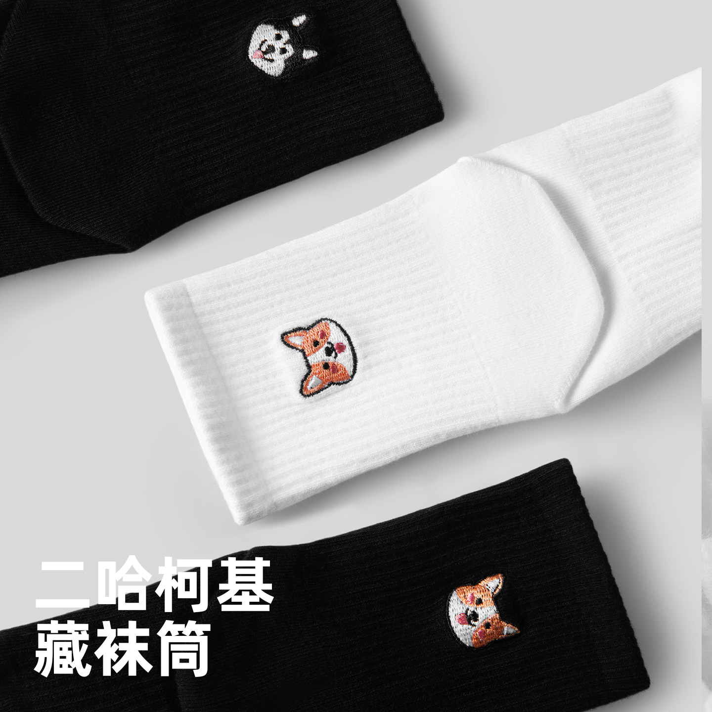 子墨男士 袜子秋冬季 中筒卡通可爱柯基小狗厚纯棉纱线潮流白袜男生