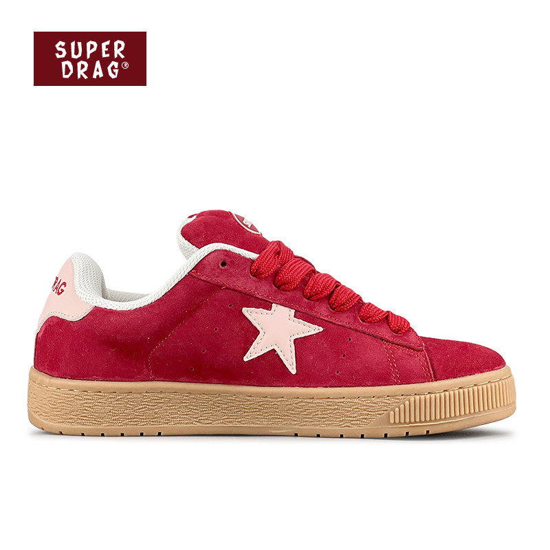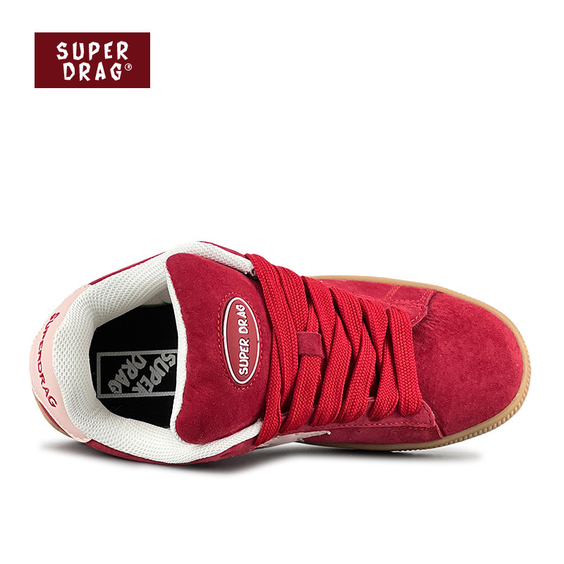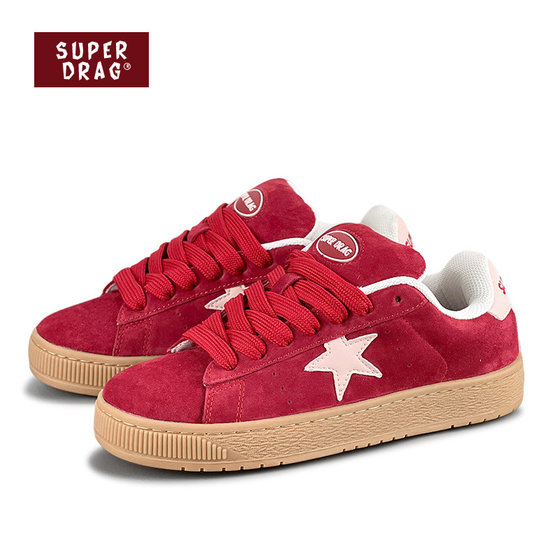 超拽SUPERDRAG 女小众复古休闲鞋 闪电面包鞋 2025新年红低帮板鞋