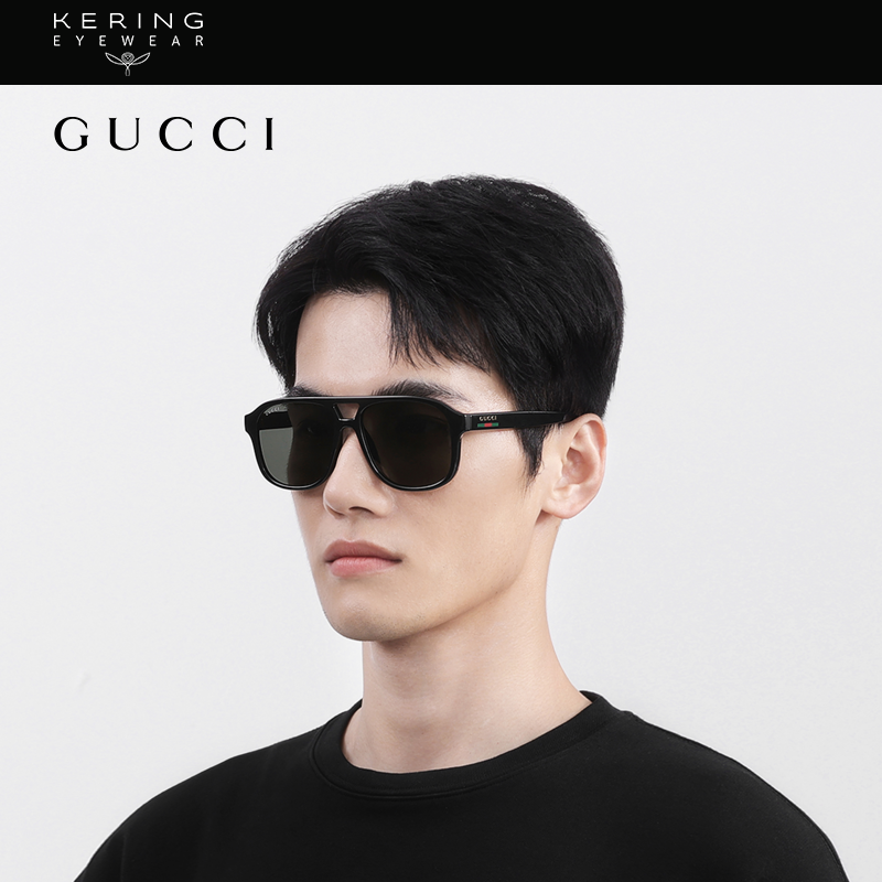 开云眼镜古驰GUCCI男女同款 双梁飞行员黑框防晒太阳镜墨镜GG1856S