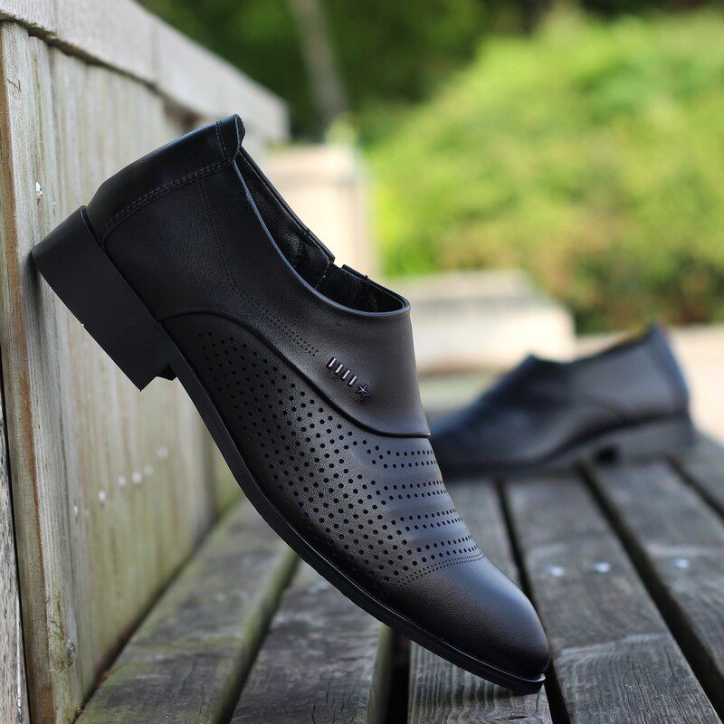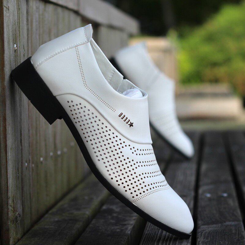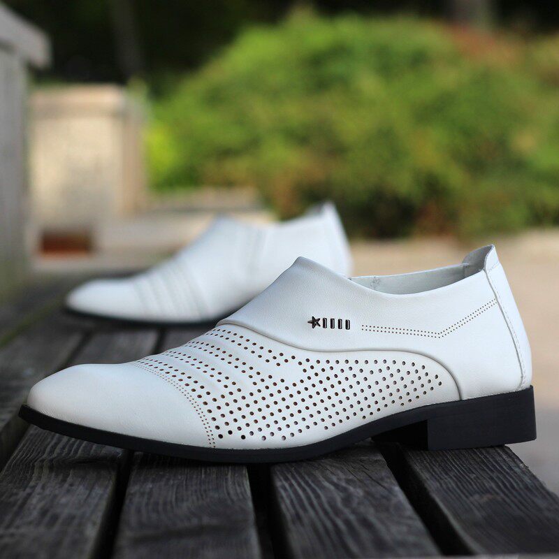 镂空透气洞洞男鞋 休闲鞋 子皮凉鞋 夏季 商务正装 男士 白色乐福潮鞋