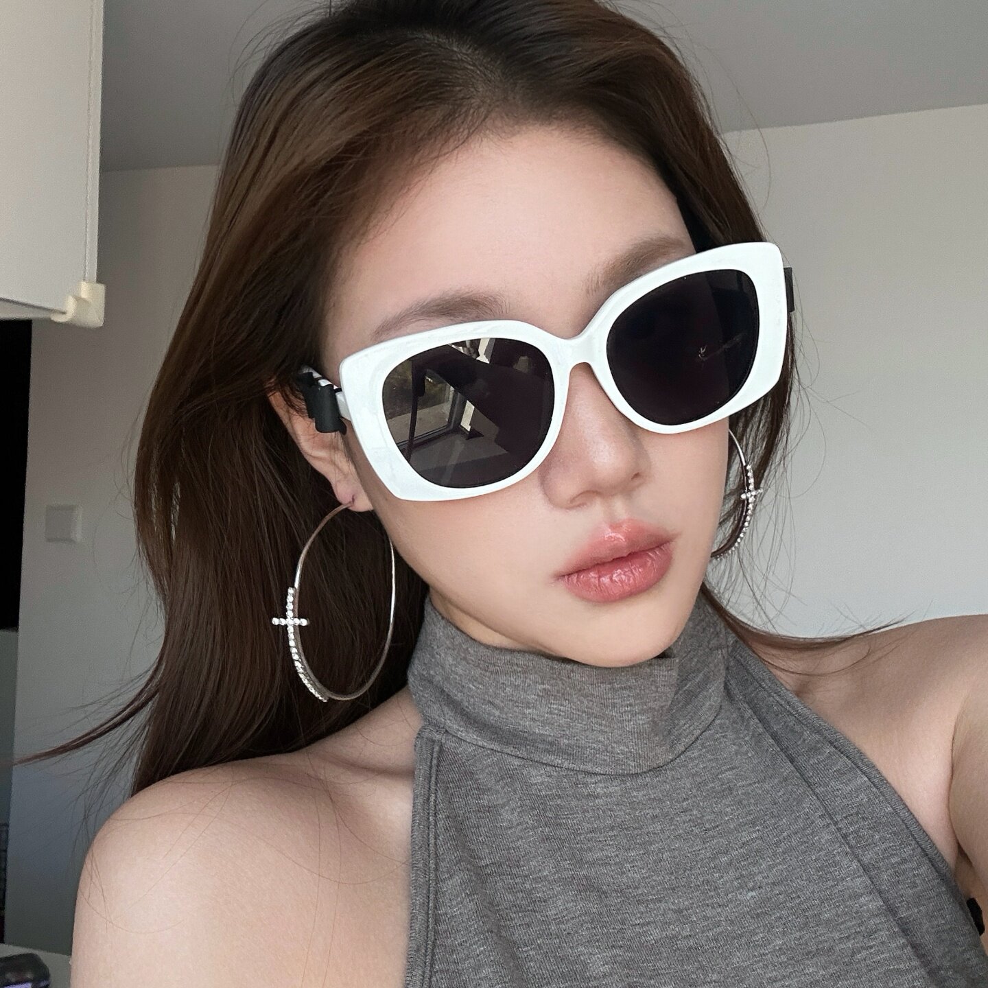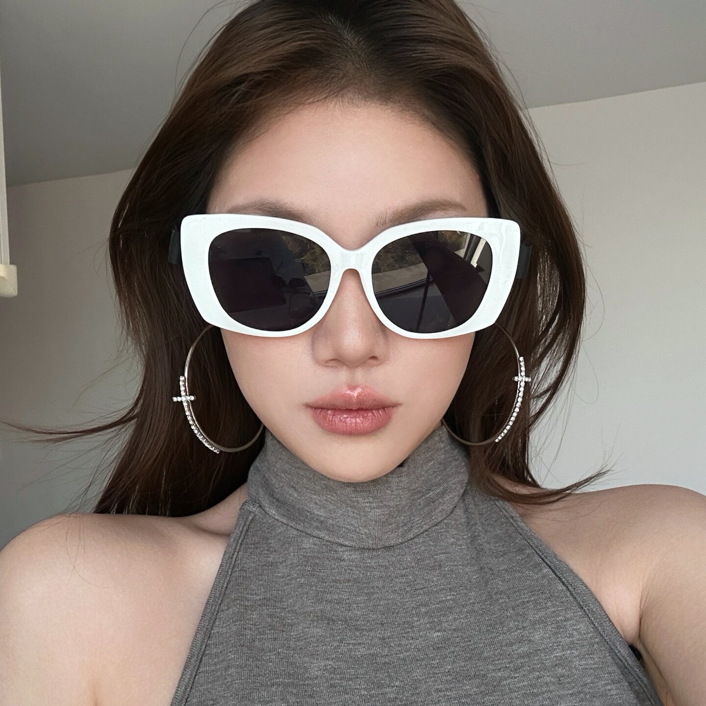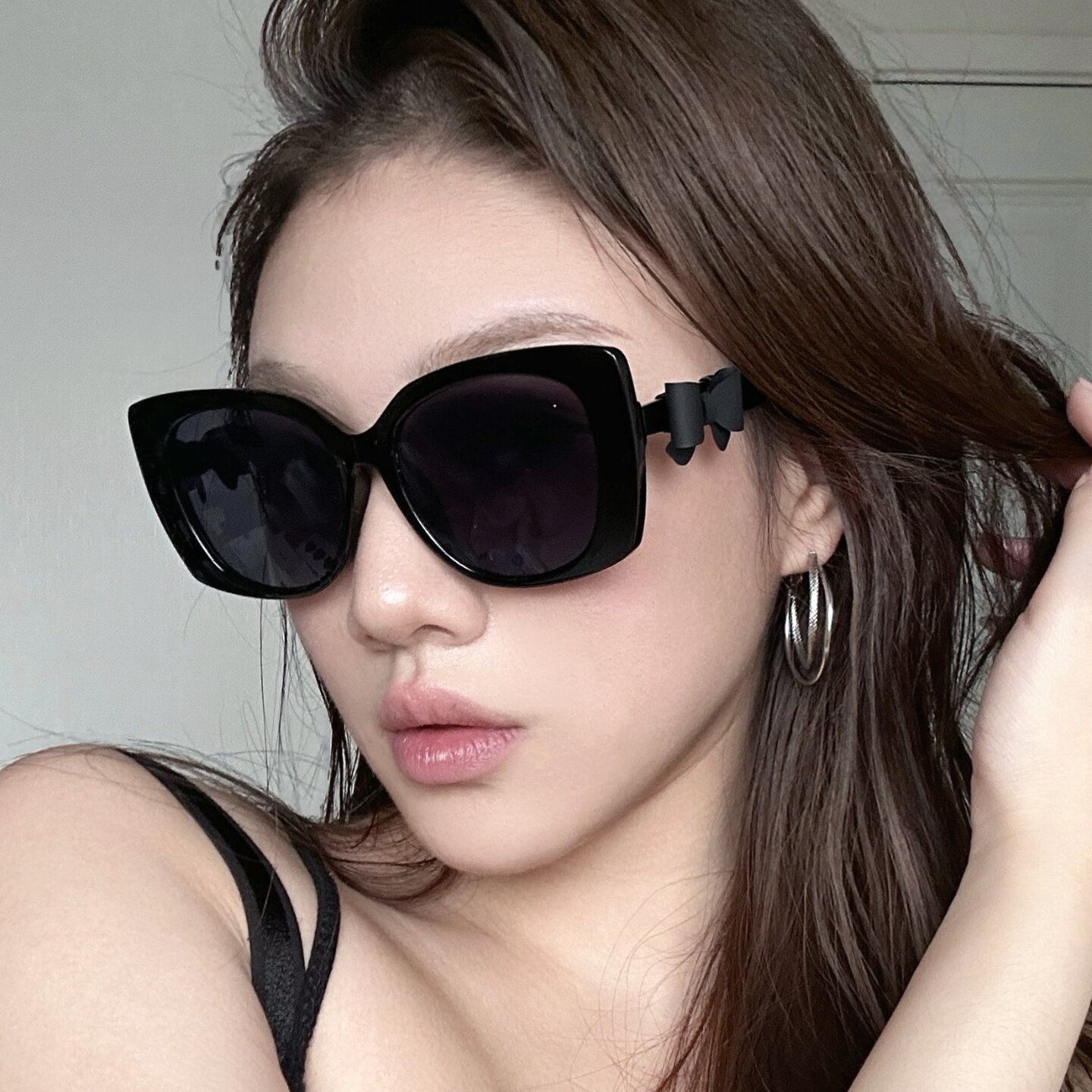 欧美辣妹复古白色大框猫眼墨镜女方圆脸显瘦高级感太阳镜蝴蝶结腿