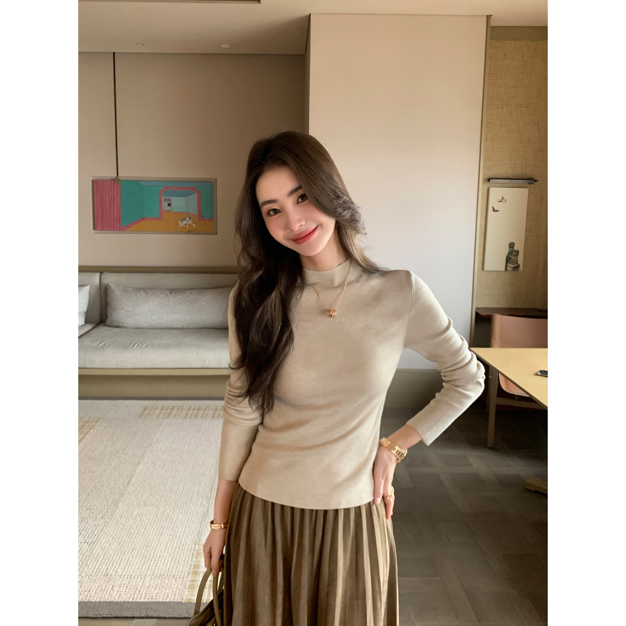 回归舒适 黑色半高领针织衫 女气质修身 pusumede 柔软长袖 打底上衣