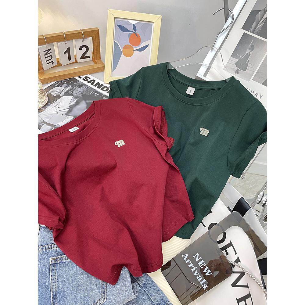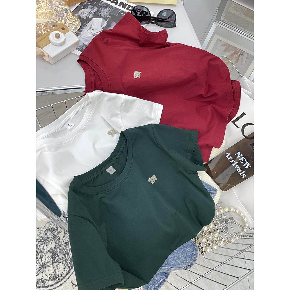 t恤女夏新款 2025韩版 半袖 短款 设计感小众正肩纯棉显瘦短袖 上衣服