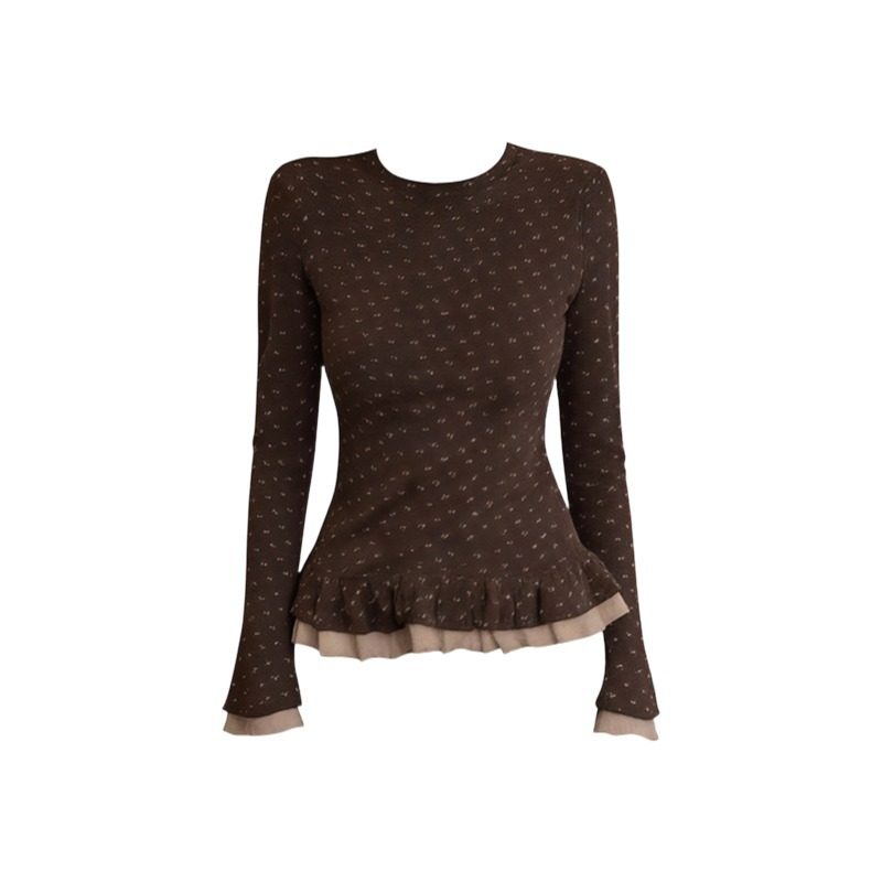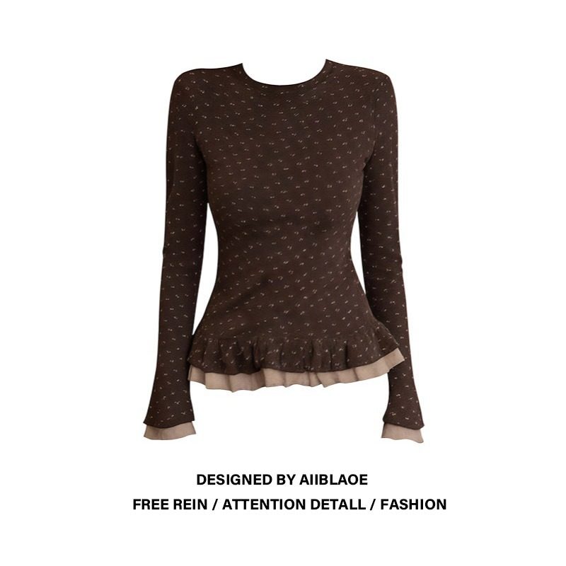 T恤女秋冬设计感时尚 大码 胖mm韩系双层花边碎花长袖 绝美内搭上衣