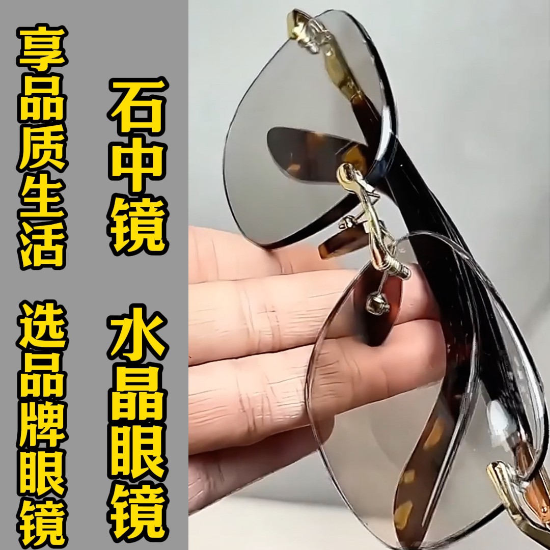 纯水晶石眼镜冰糖色水晶太阳镜墨镜司机开车石头镜超清晰清凉护目
