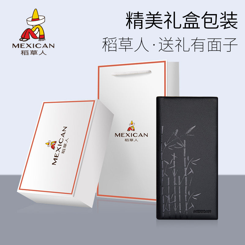 稻草人钱包男士 青年钱夹皮夹子 潮流时尚 长款 真皮头层牛皮2025新款